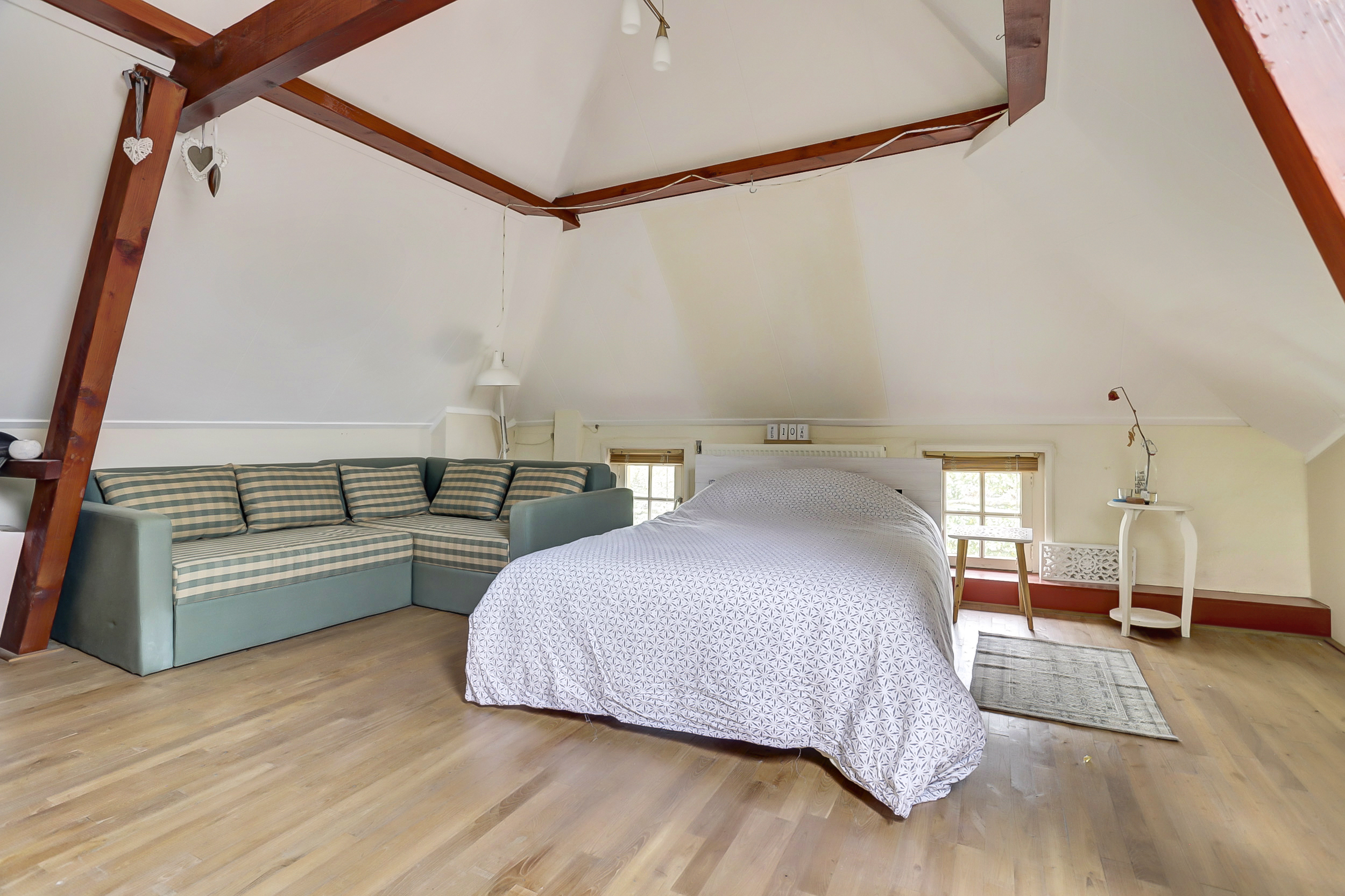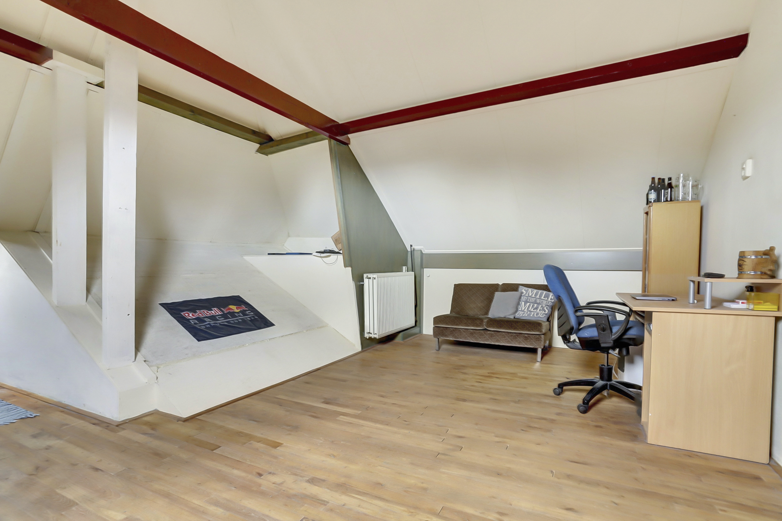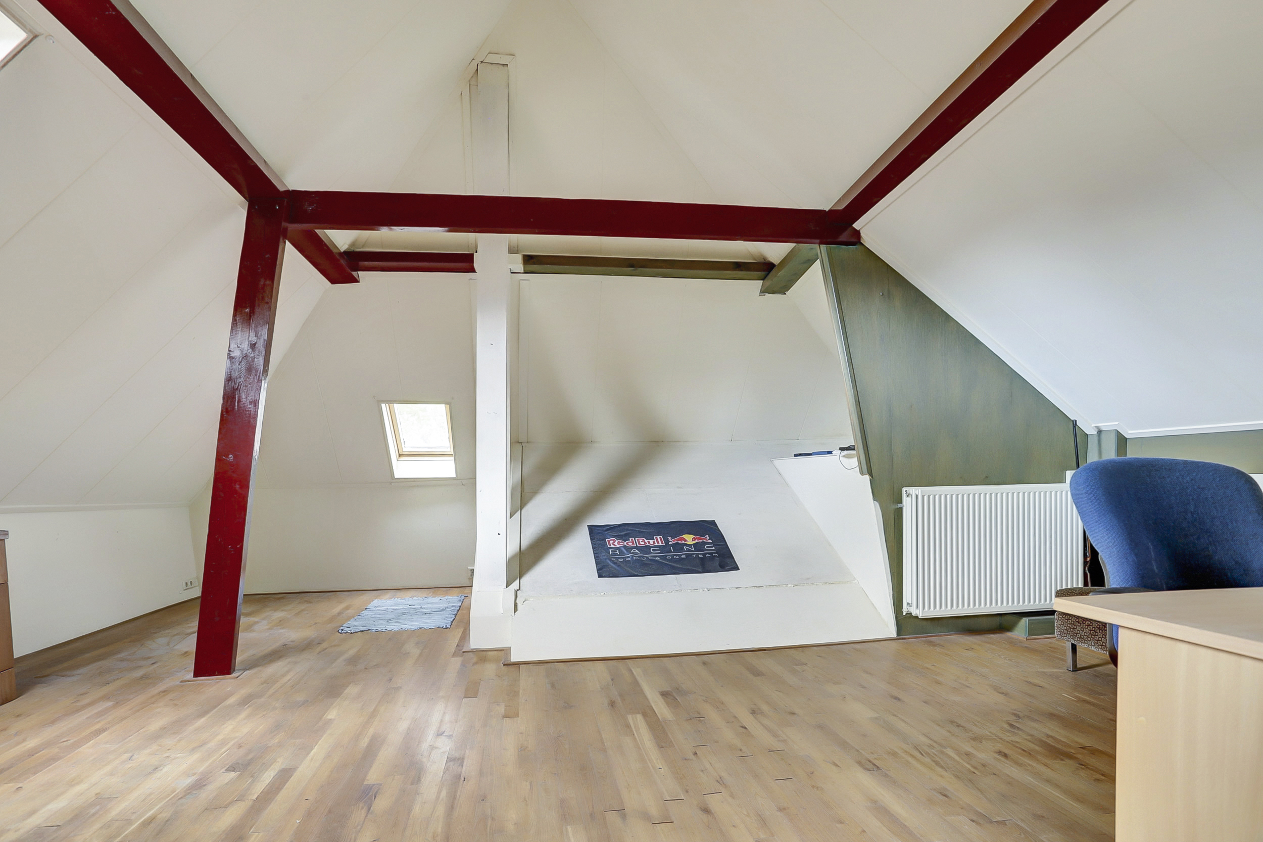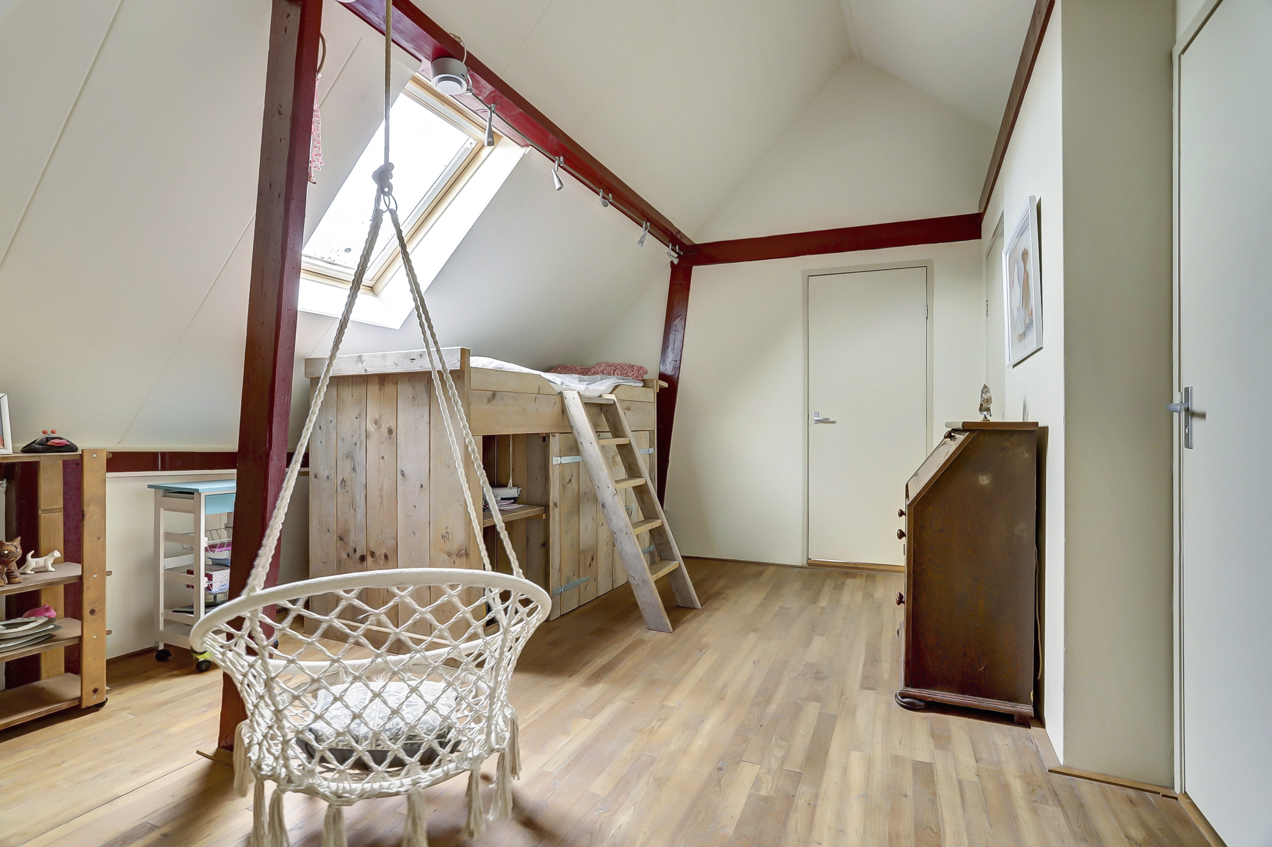 Een vaste trap leidt naar de eerste verdieping met een royale overloop onder de hoge kap welke toegang verschaft aan de divesre vertrekken. Aan de voorzijde en achterzijde liggen twee ruime slaapkamers met veel lichtinval dankzij de lage roederamen en dakvensters. De tweede badkamer beschikt over een douche en wastafel; daarnaast is er een separaat toilet. De gehele verdieping is afgewerkt met stucwerk en beuken vloerdelen.