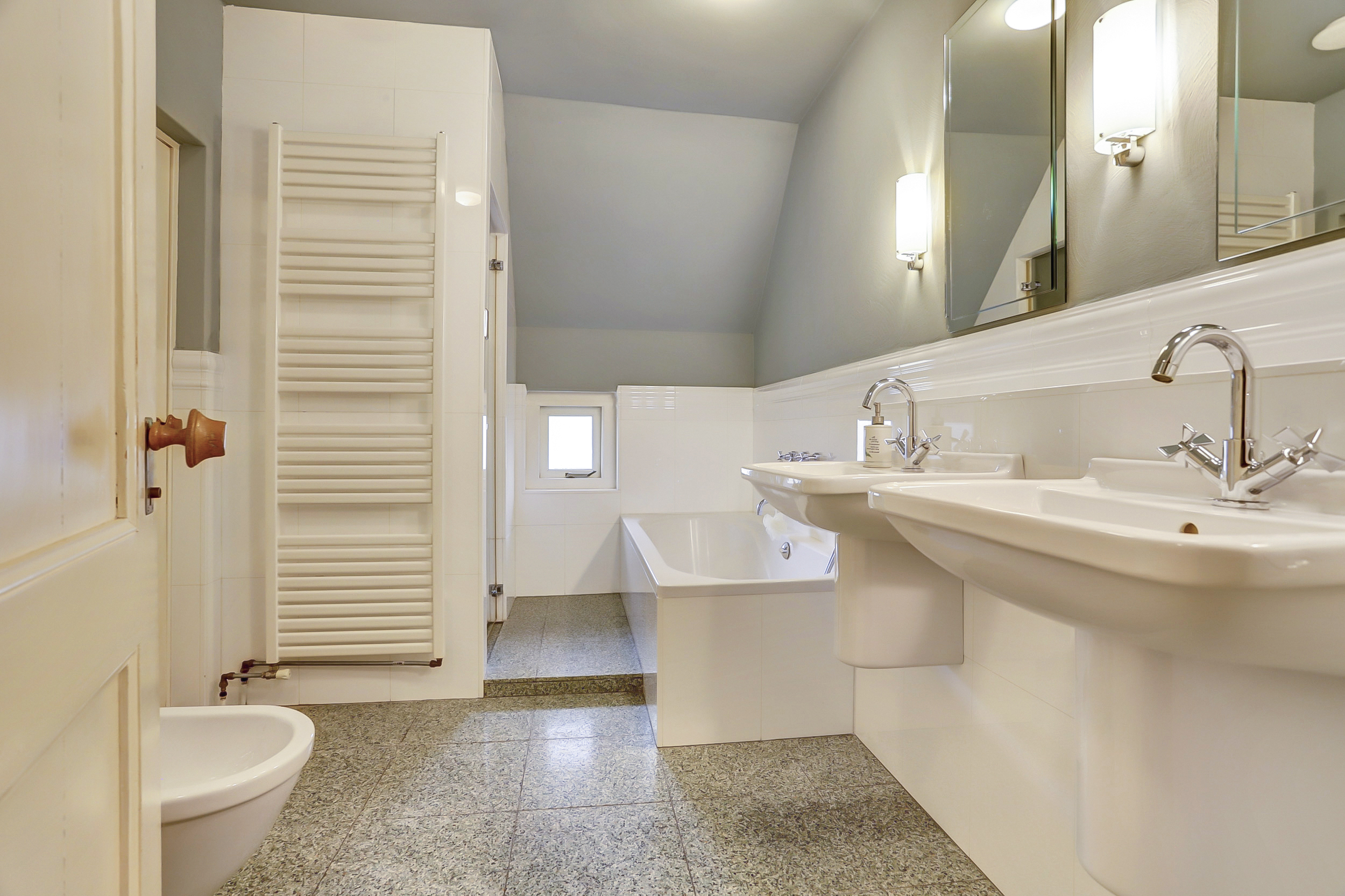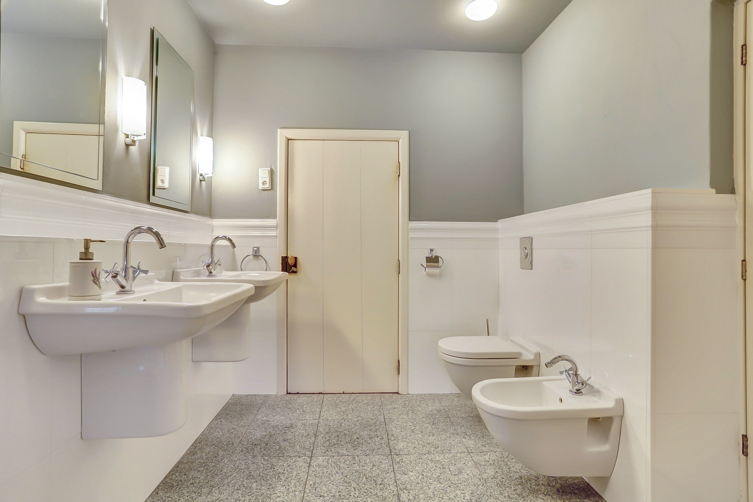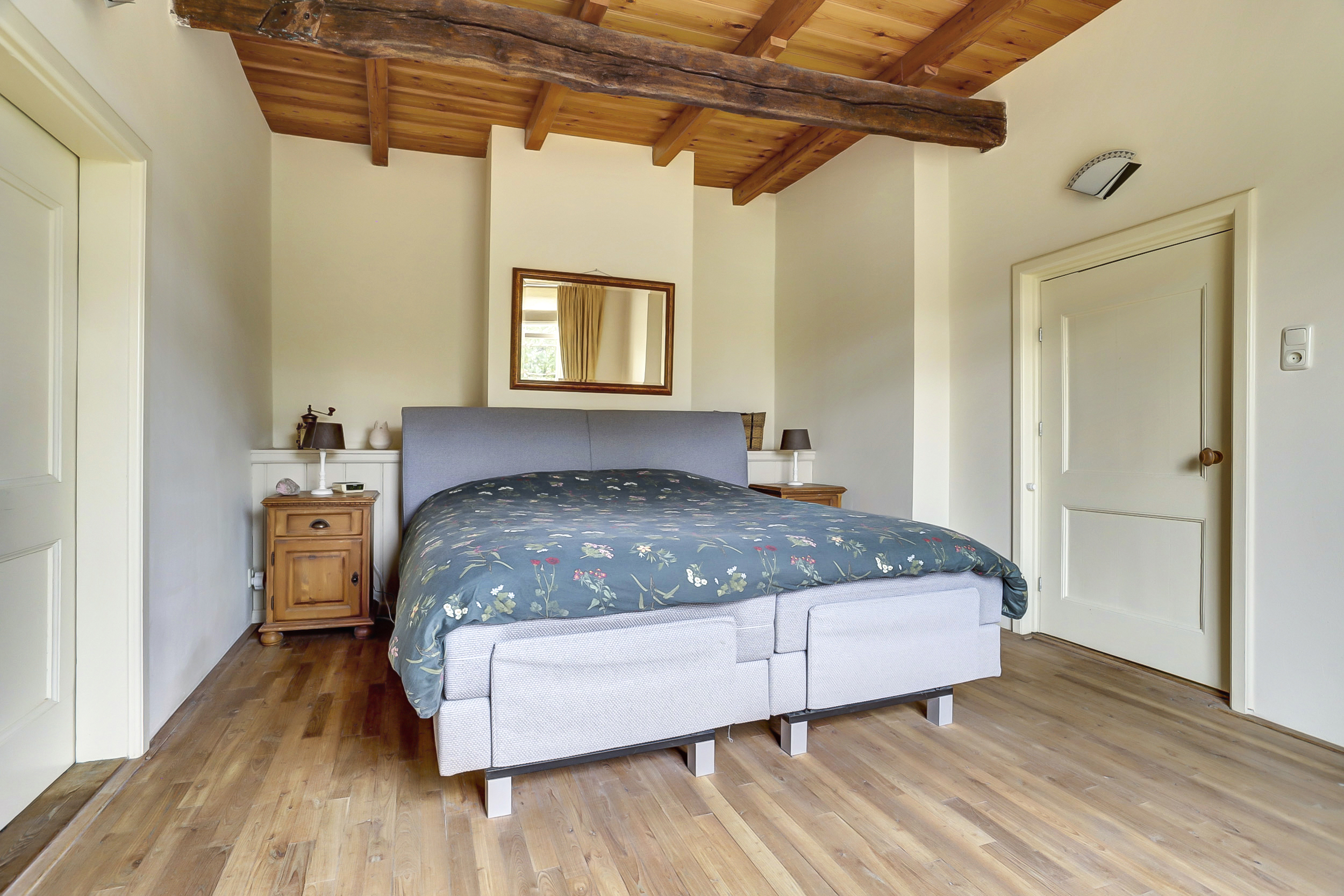 Aan de linkerkant ligt de ruime ouderslaapkamer met beukenhouten vloerdelen en een aangrenzende kleedkamer met kastenwand. Vanuit hier bereik je de luxe badkamer met ligbad, stoom-/douchecabine, dubbele wastafel, bidet en toilet.