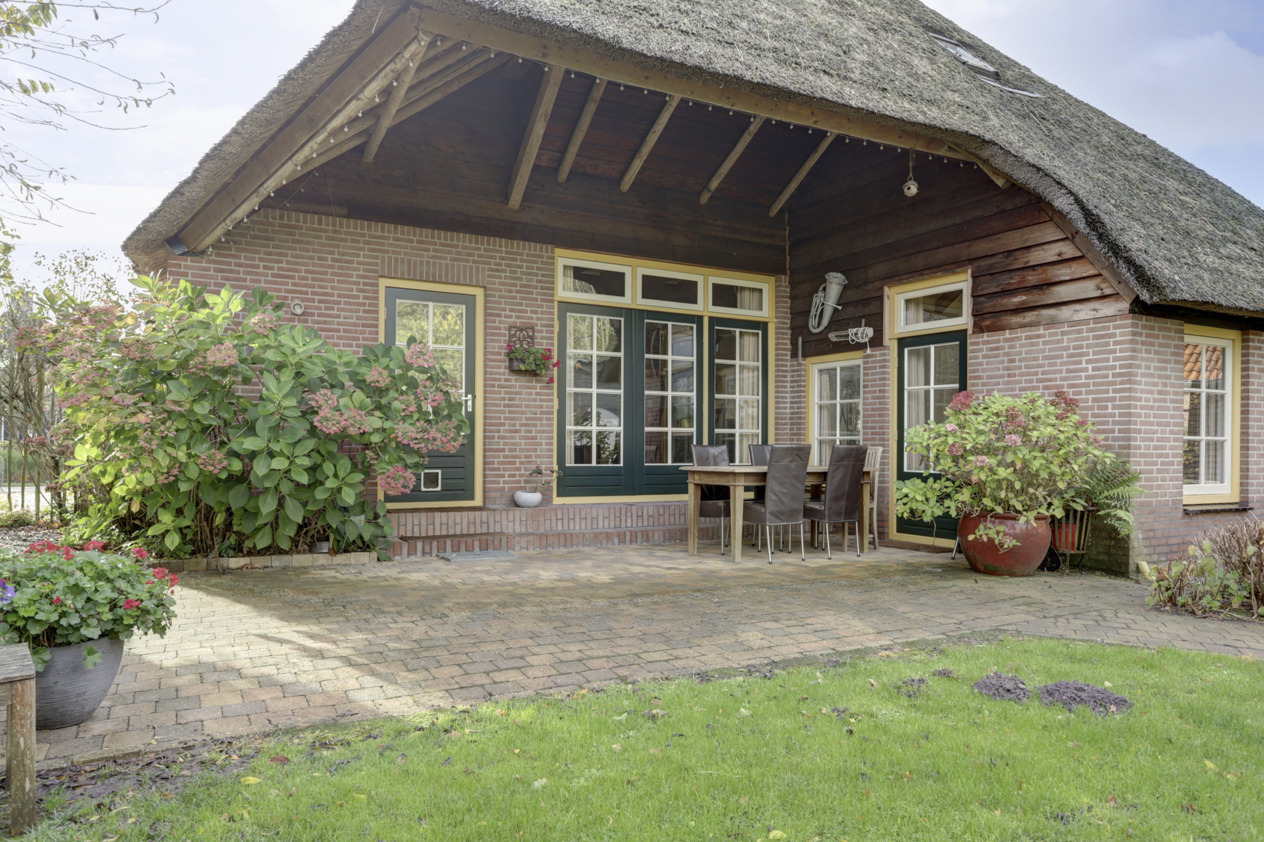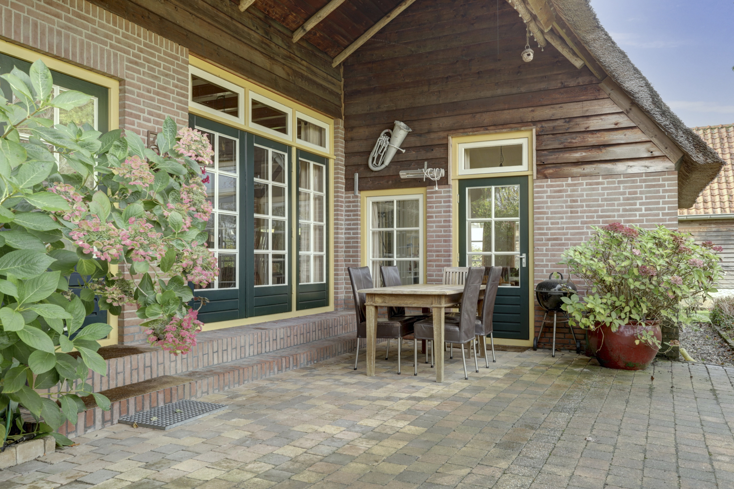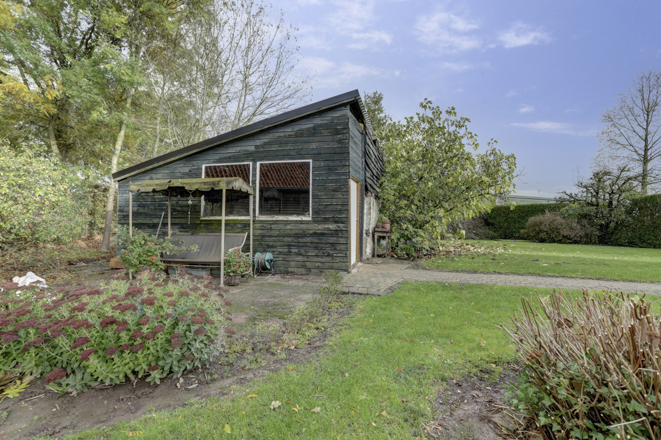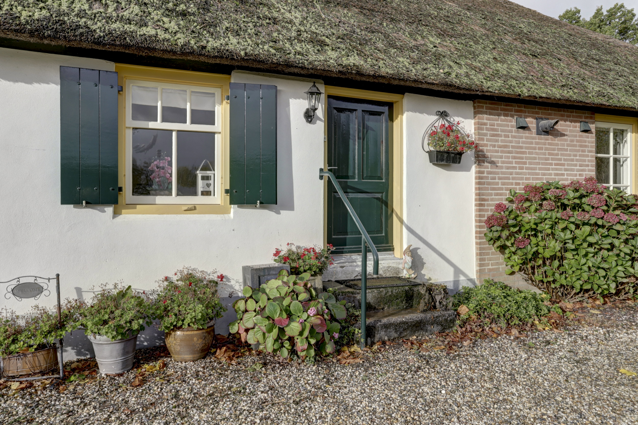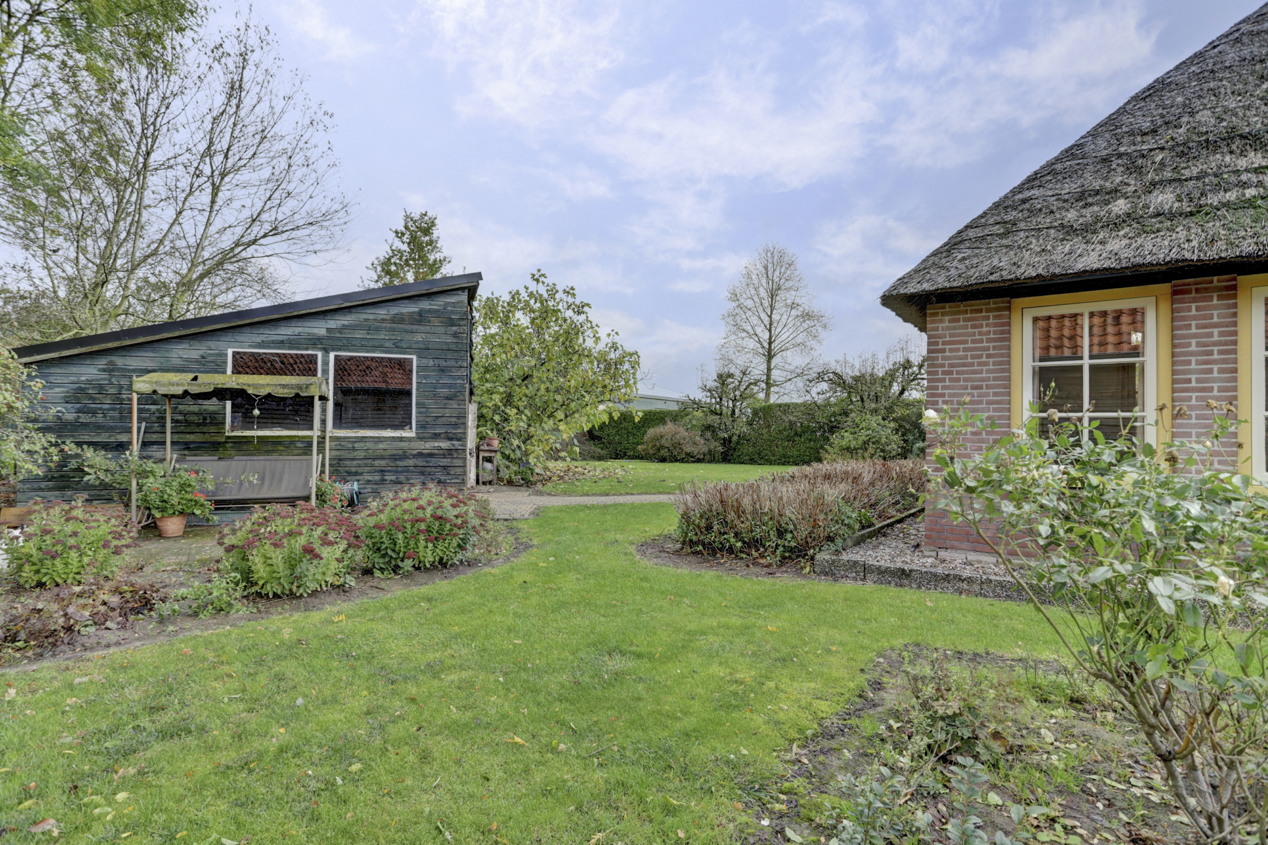 De riant aangelegde tuin met gazon, hortensia’s, lavendel, Buxusvakken en witte rozen is een lust voor het oog. Er zijn meerdere terrassen en volop parkeergelegenheid op eigen terrein. Achter op het perceel staat een schuur van 48 m², een overblijfsel van de vroegere hooiberg — eenvoudig van uitvoering maar met veel mogelijkheden. De tuin wordt aan de achterzijde begrensd door een aardenwal, waardoor je volop privacy geniet.