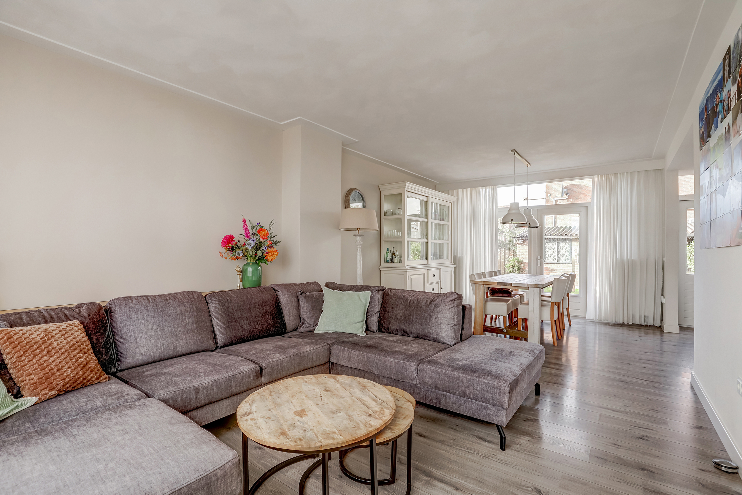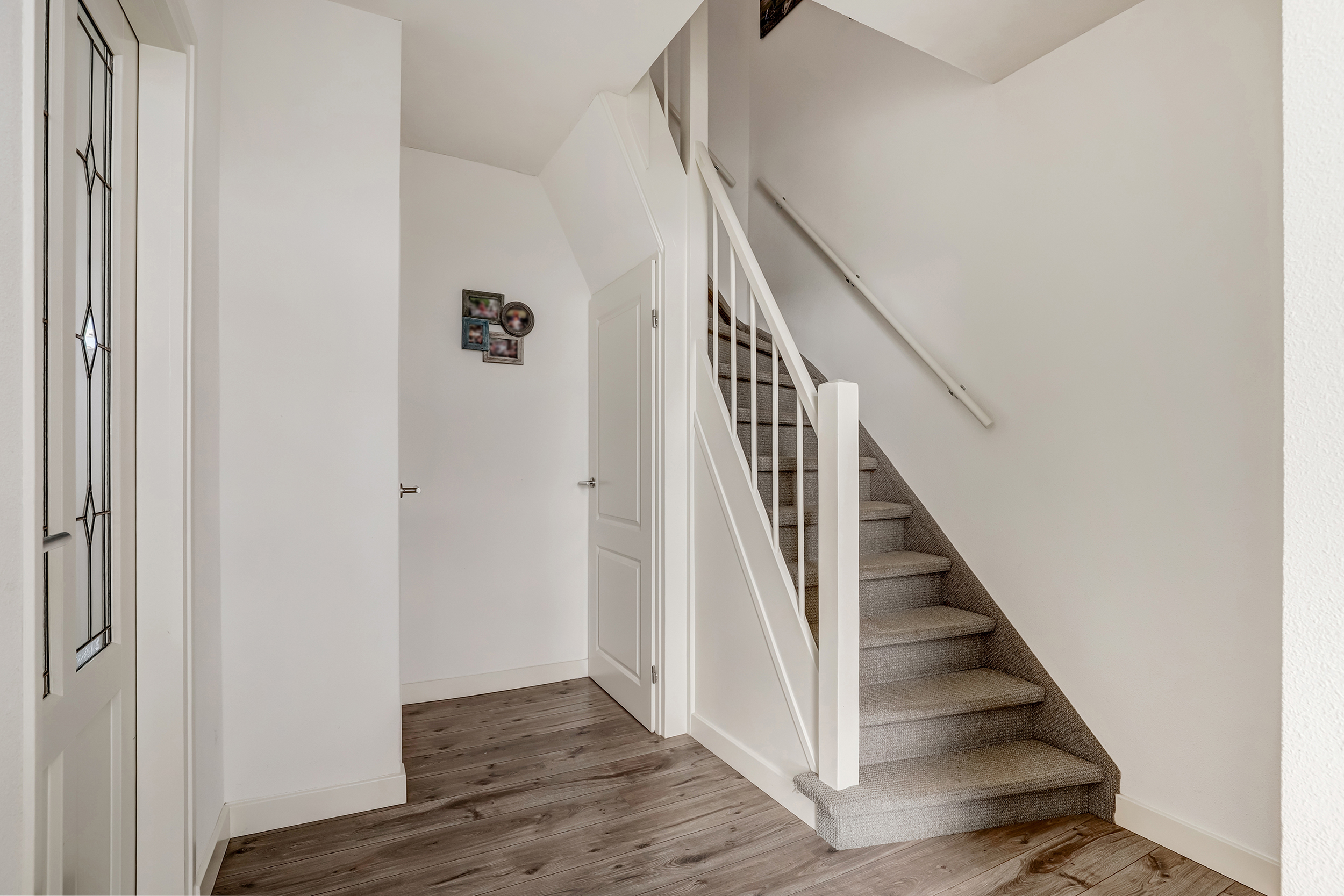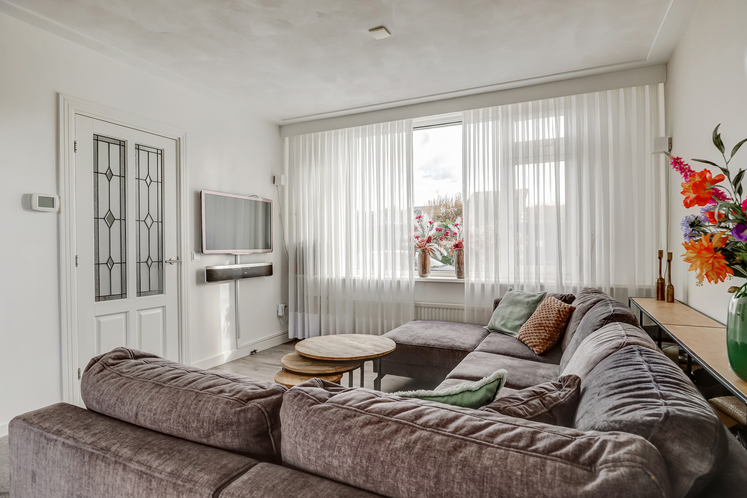 Via de ruime entree met trapopgang, meterkast, trapkast en toilet kom je binnen in de lichte woonkamer. Aan de voorzijde bevindt zich het gezellige zitgedeelte met plek voor een fijne (hoek)bank, waar je dankzij de gunstige ligging een vrij uitzicht hebt.