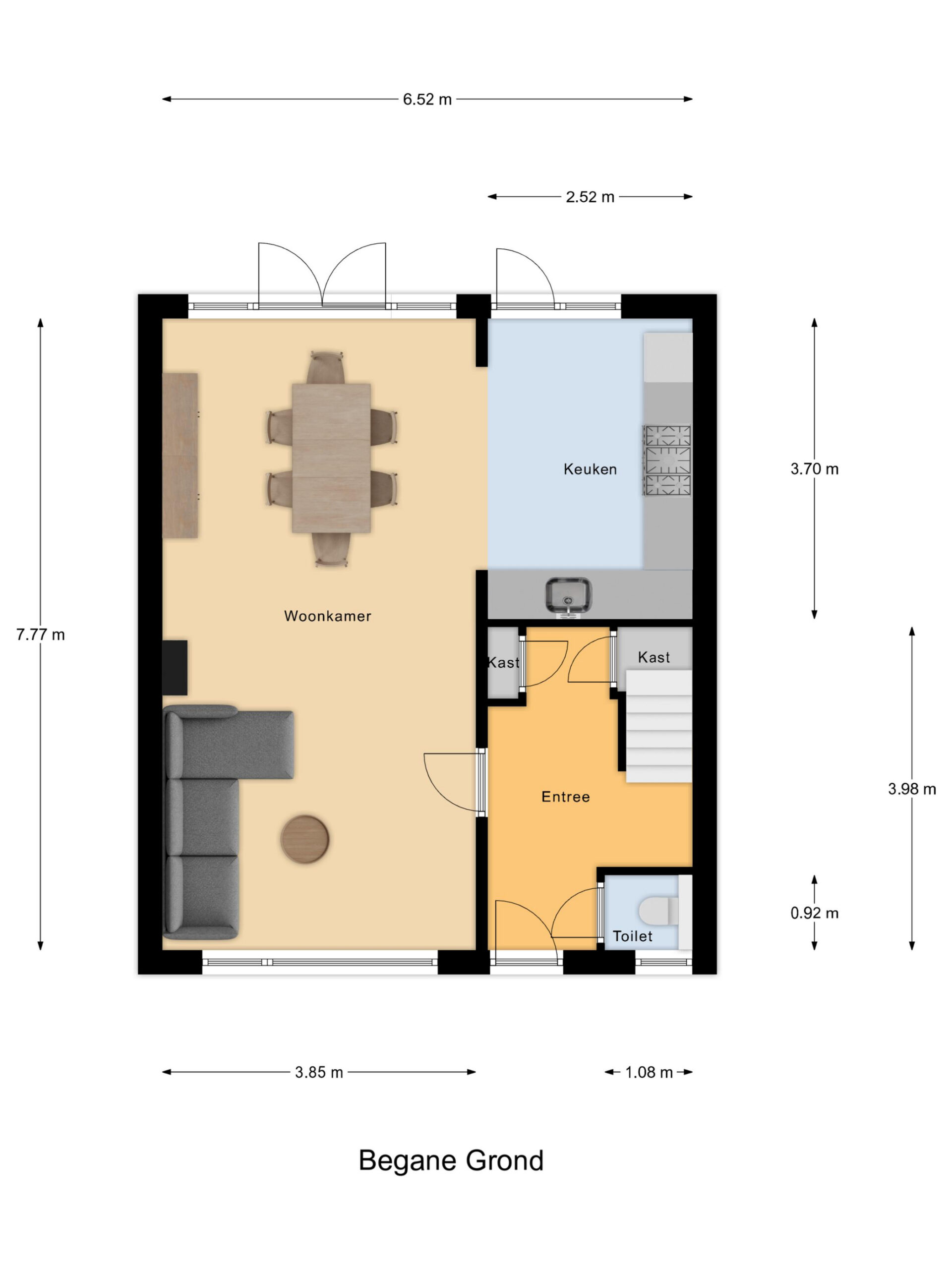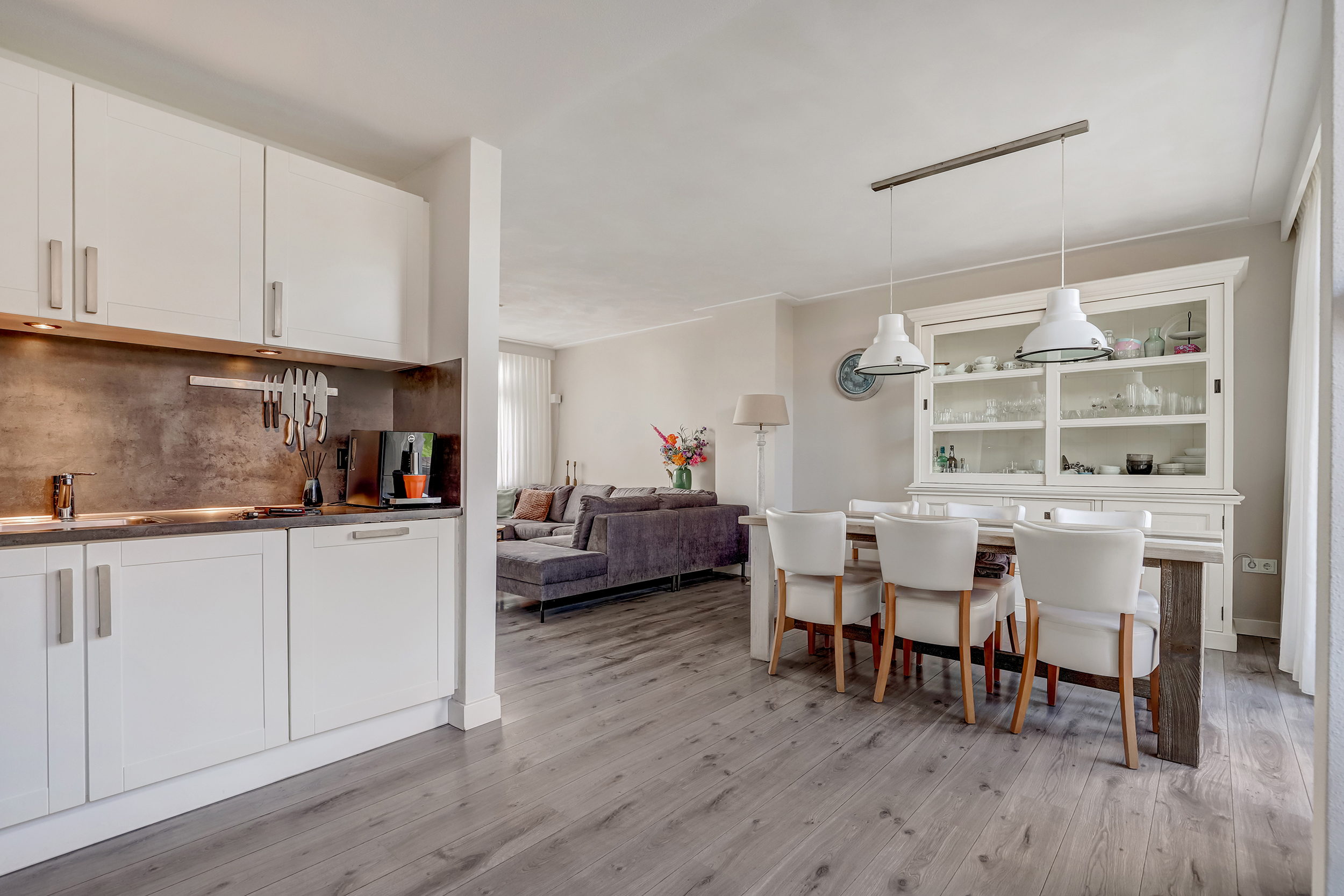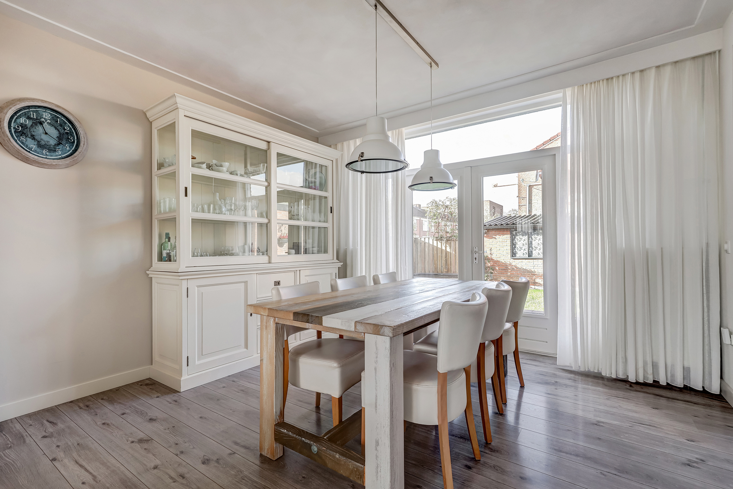 Aan de achterzijde is volop ruimte voor een grote eettafel — ideaal voor gezellige avonden met familie en vrienden – met openslaande deuren naar de achtertuin. De moderne keuken is eveneens aan de achterzijde gesitueerd en voorzien van diverse inbouwapparatuur, veel werk- en kastruimte en een directe doorgang naar de achtertuin.