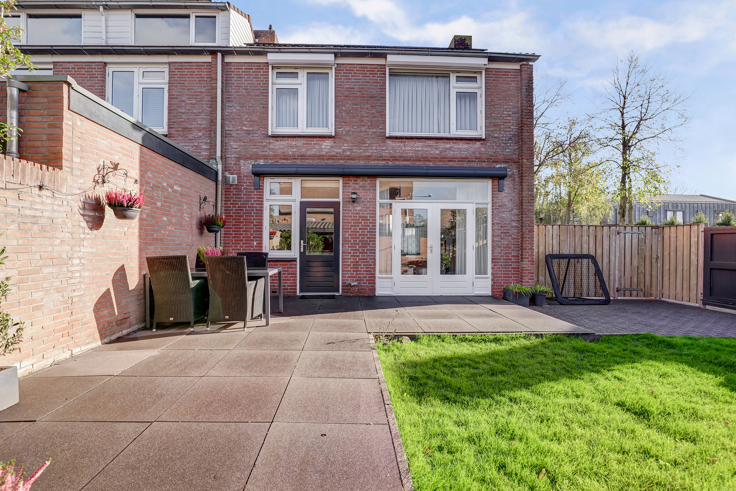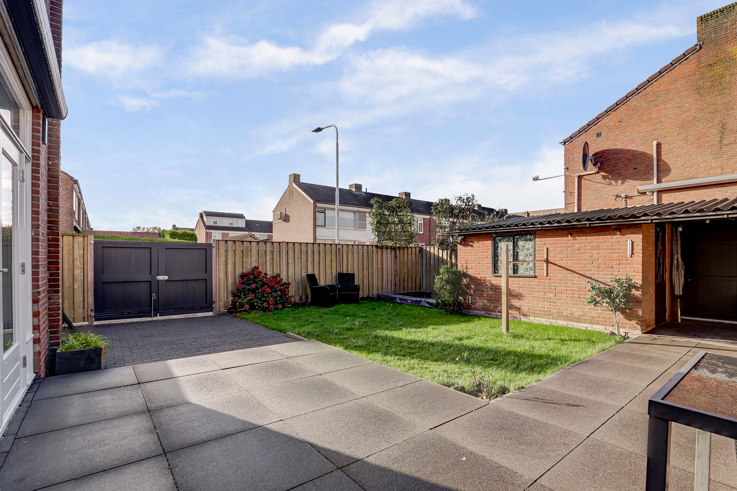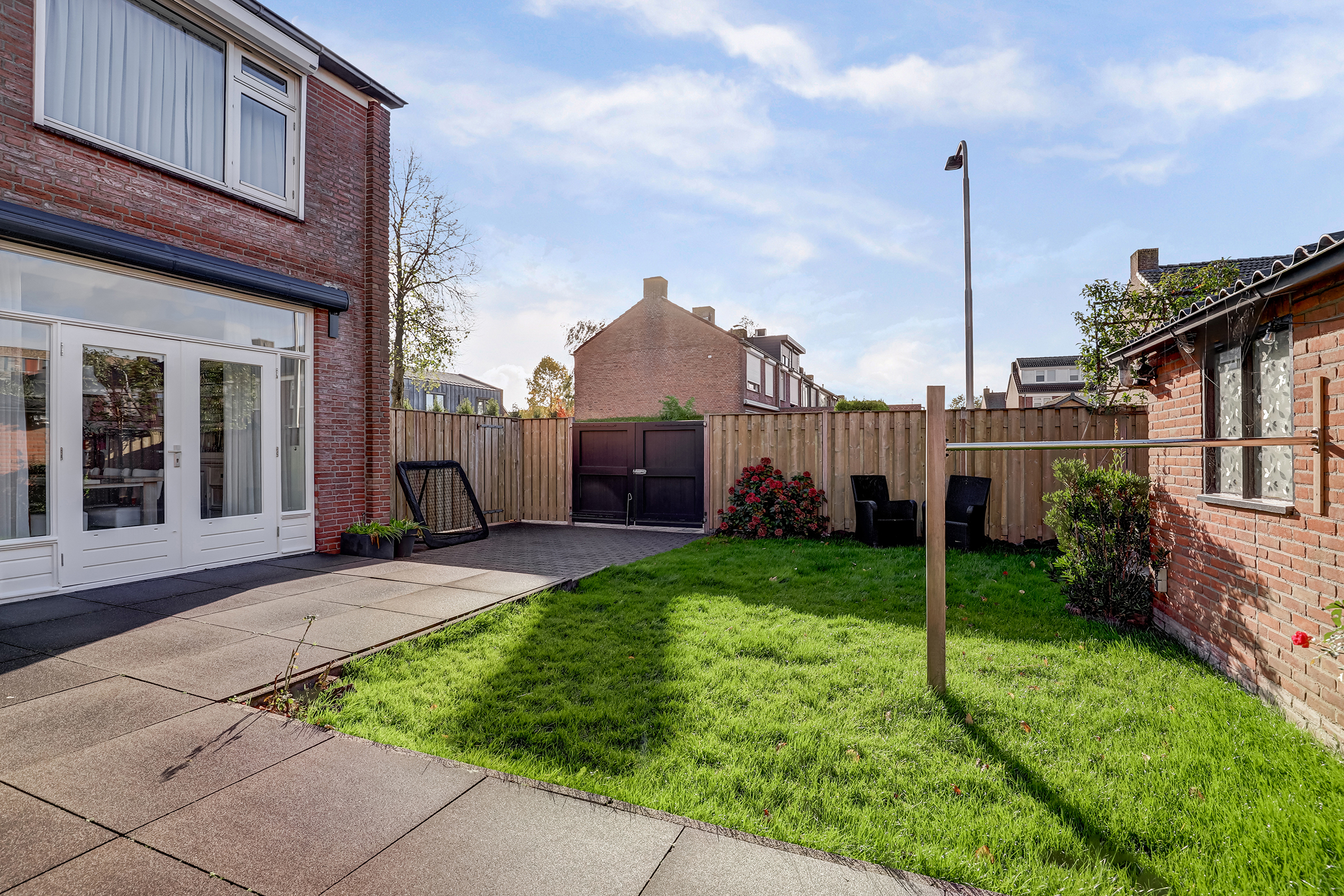 De ruime achtertuin is een heerlijk verlengstuk van de woning. Dankzij de royale opzet en de gunstige ligging heb je hier volop privacy. Er is een groot terras met plaats voor een loungeset en eettafel — perfect voor ontspannen zomerdagen en gezellige avonden buiten.