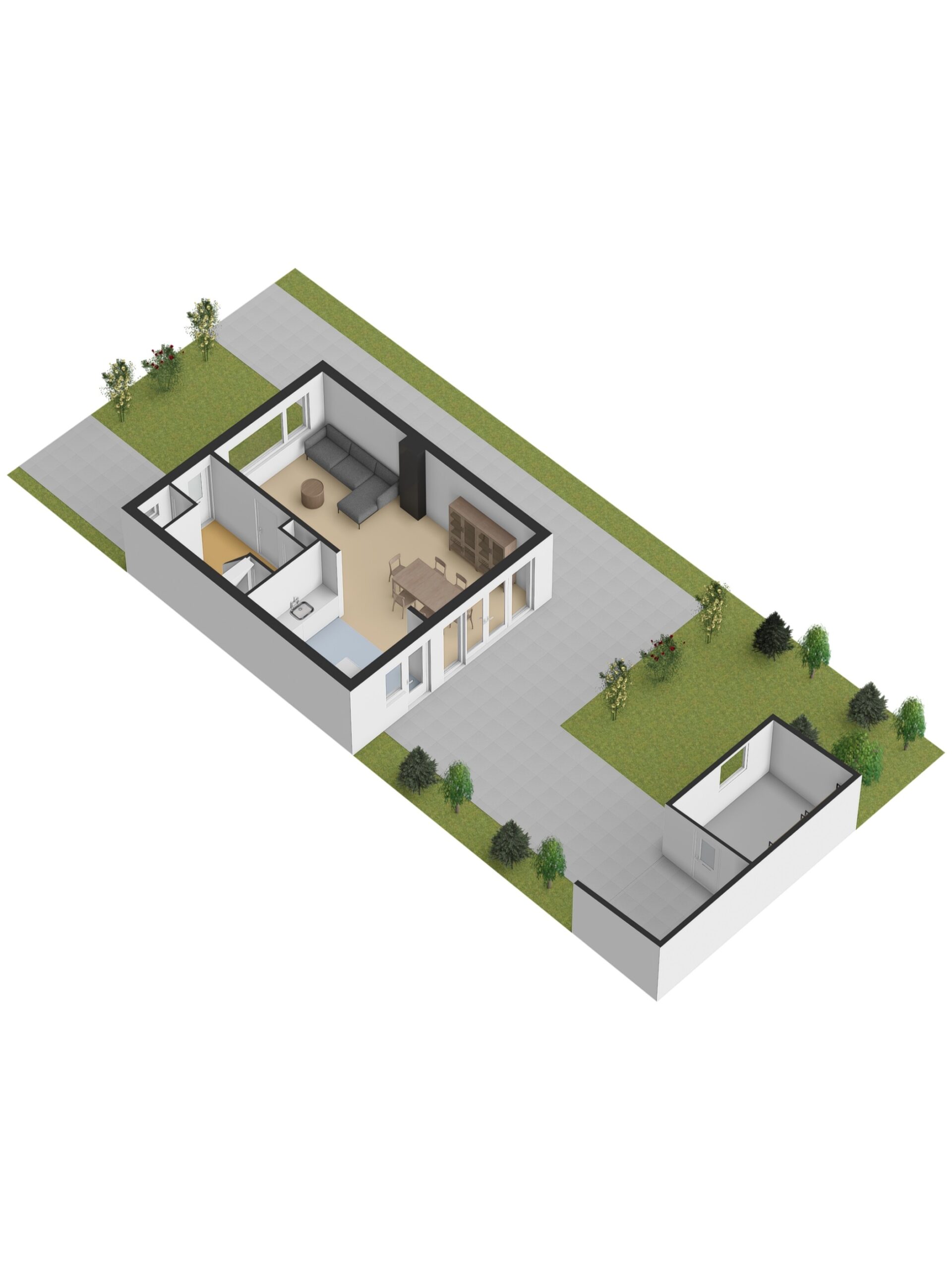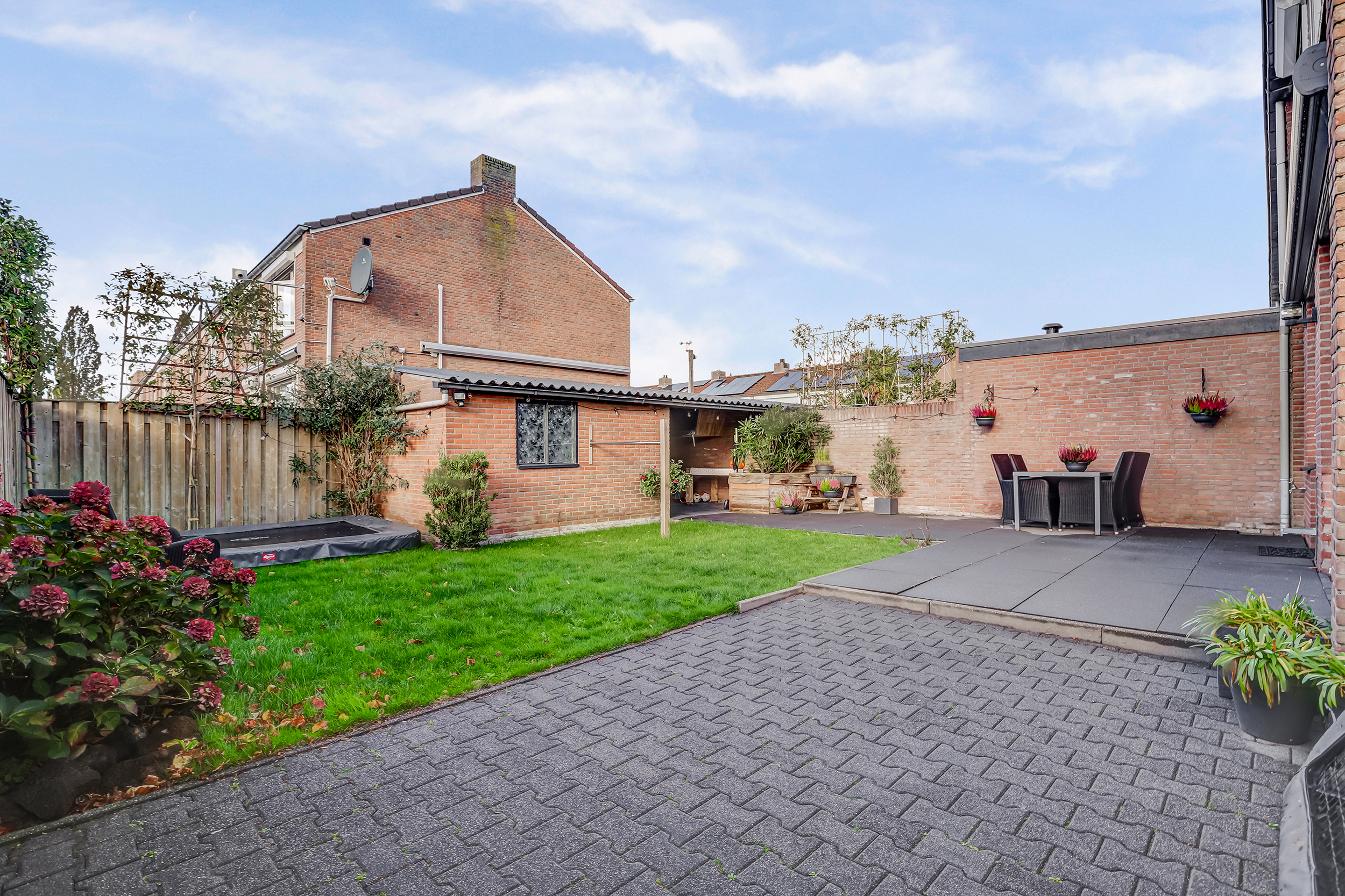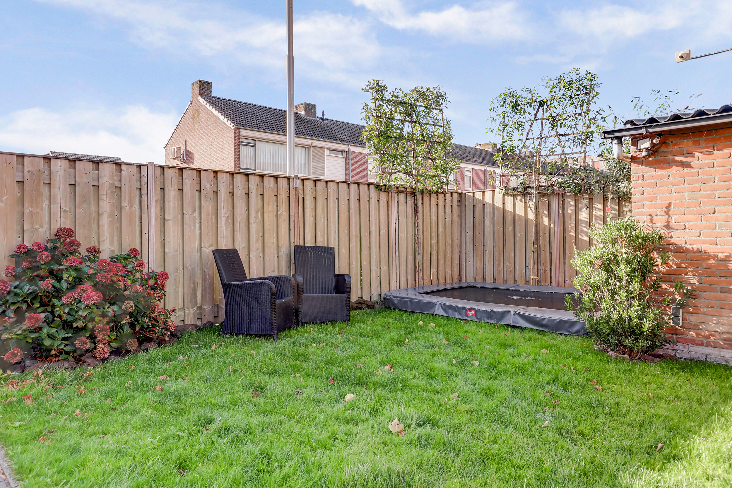 De ruime achtertuin is een heerlijk verlengstuk van de woning. Dankzij de royale opzet en de gunstige ligging heb je hier volop privacy. Er is een groot terras met plaats voor een loungeset en eettafel — perfect voor ontspannen zomerdagen en gezellige avonden buiten.