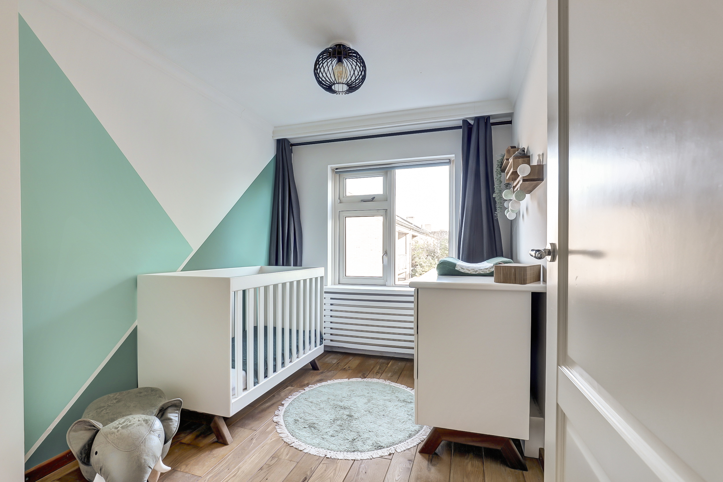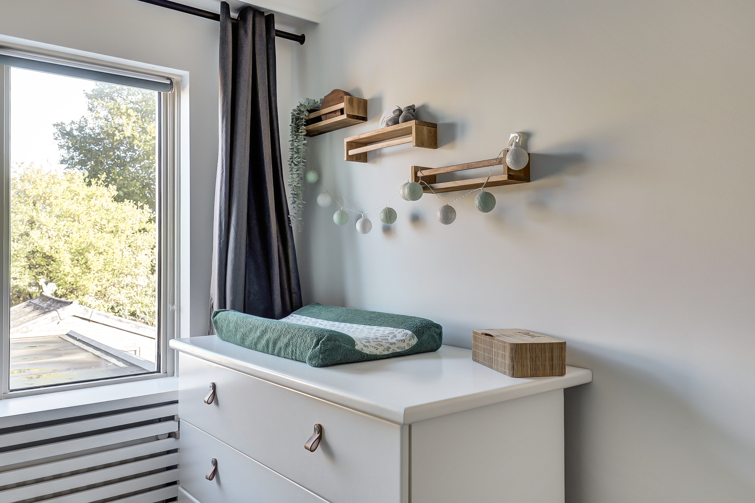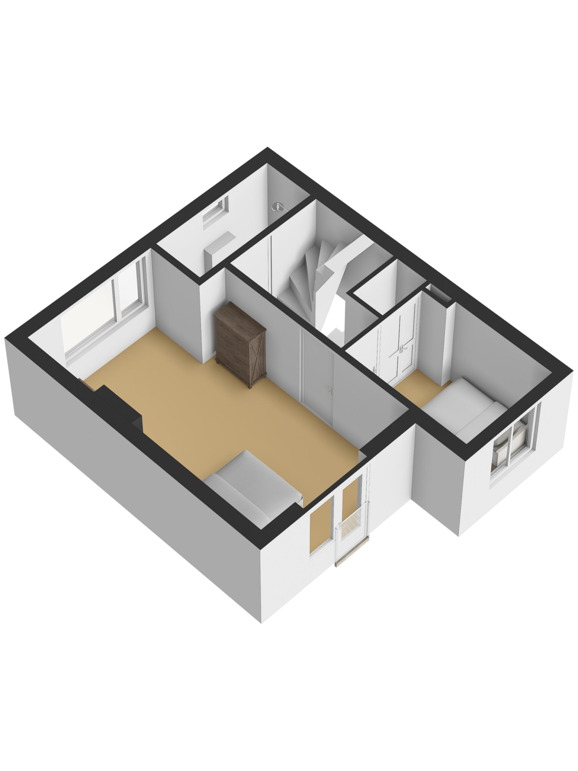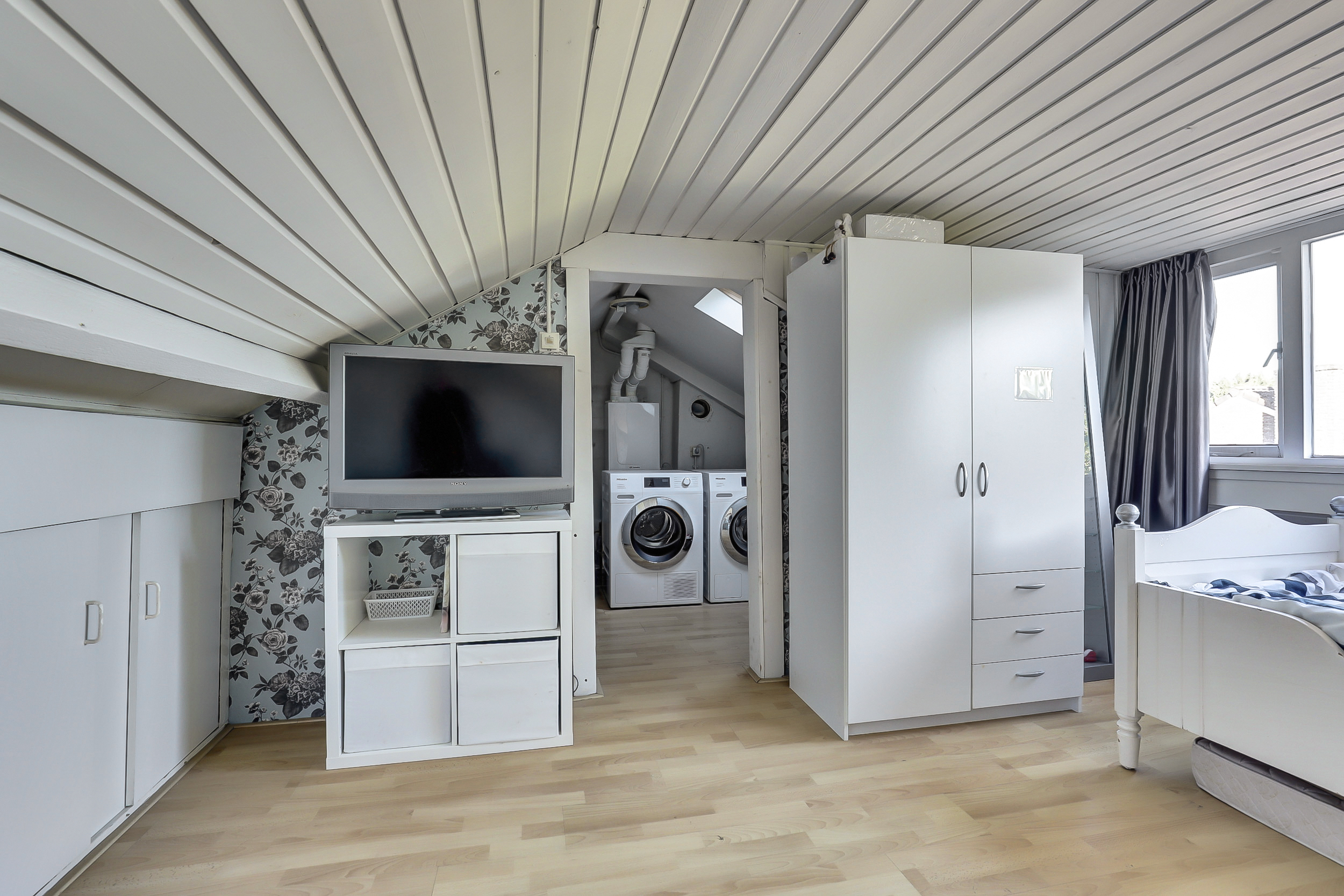 De derde slaapkamer is ruim en licht dankzij de dakkapel aan de achterzijde. Ook is er volop bergruimte achter de knieschotten, wat deze kamer niet alleen royaal maakt, maar ook functioneel. Ideaal als volwaardige slaapkamer, werkkamer of hobbyruimte.