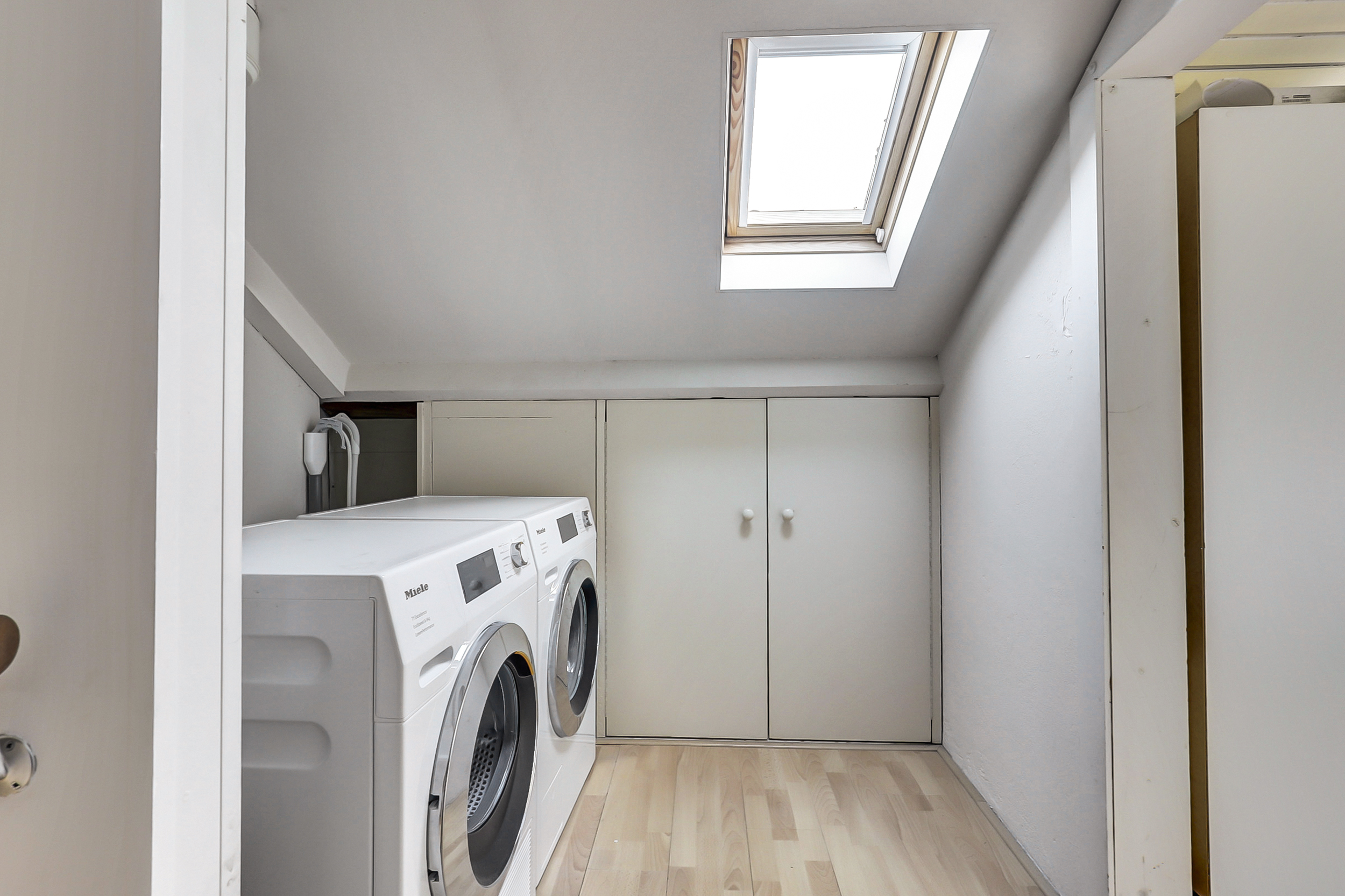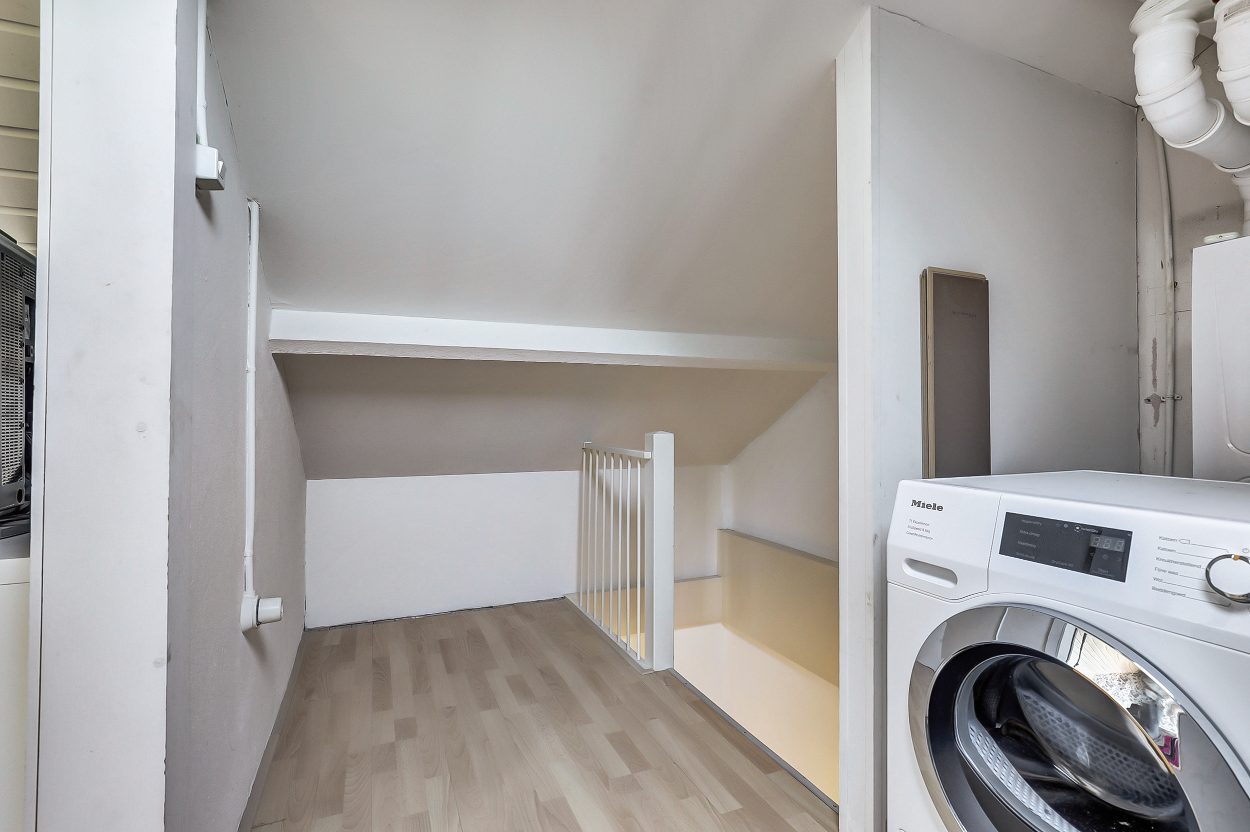 Via een vaste trap bereik je de tweede verdieping. Hier kom je eerst op een overloop met een dakraam en ruimte voor de wasmachine en droger. Tevens is hier de CV ketel aanwezig.