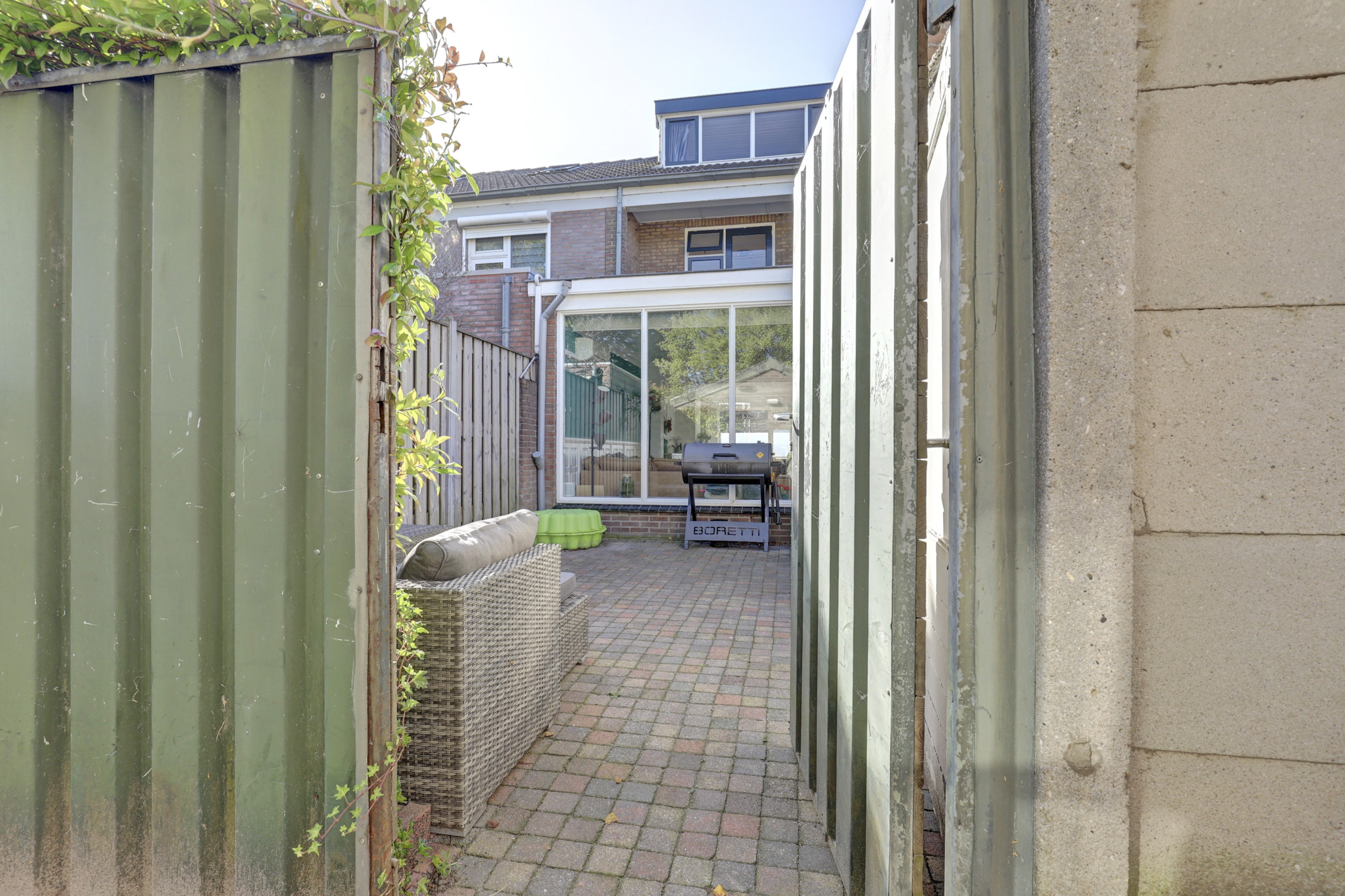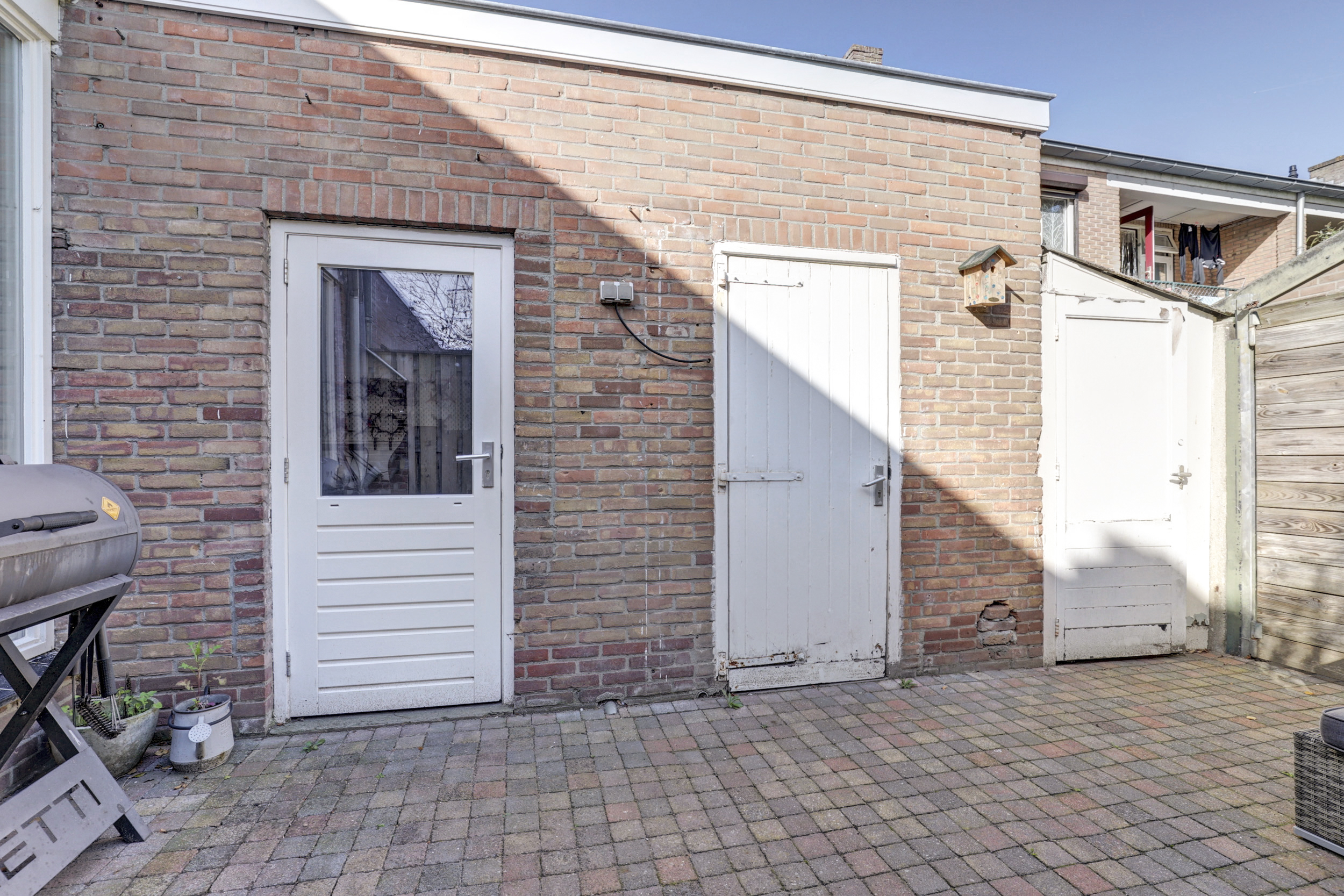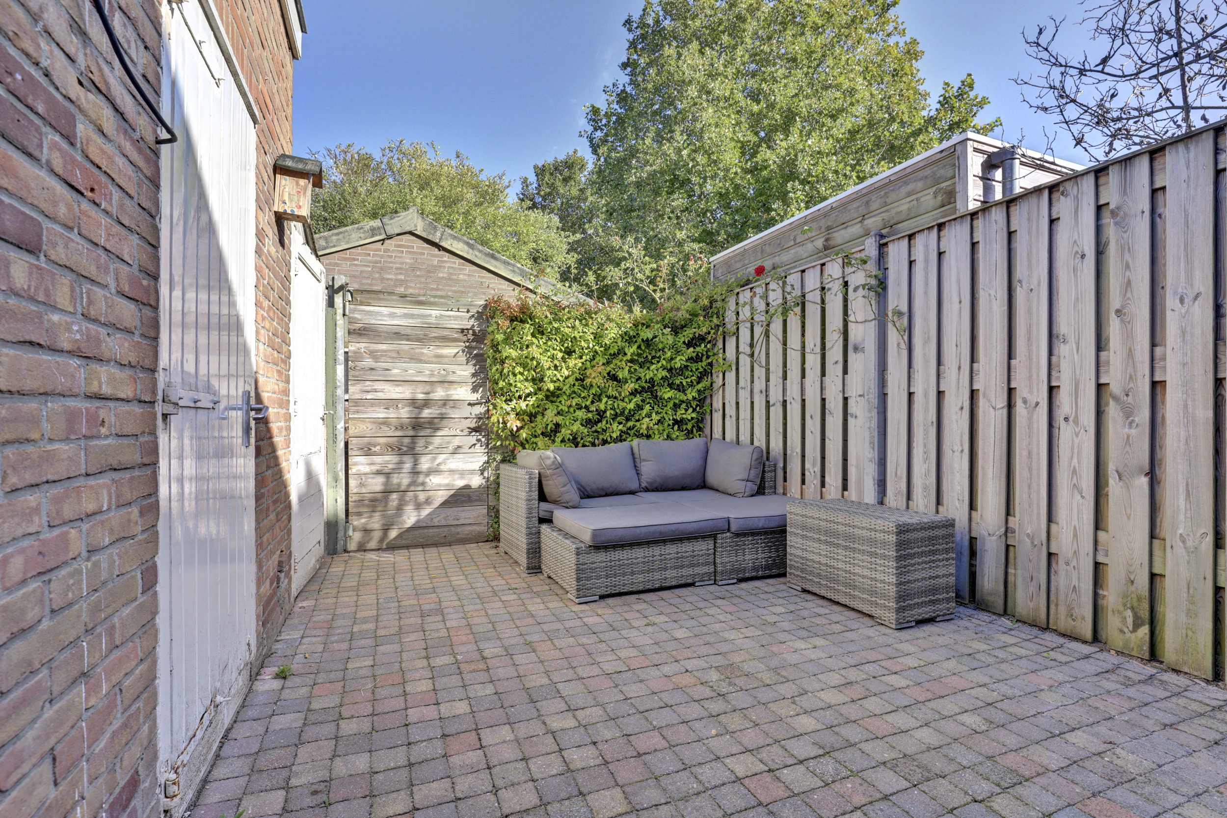 De achtertuin is overzichtelijk en praktisch ingericht met een terras, perfect voor het plaatsen van een lounge- of tuinset om heerlijk buiten te zitten. Achterin de tuin bevindt zich een berging, ideaal voor het stallen van fietsen en tuingereedschap, en er is voldoende ruimte voor de containers. Via de achterom is de tuin ook makkelijk bereikbaar. Direct achter de woning ligt een speeltuin, wat deze locatie extra aantrekkelijk maakt voor gezinnen met kinderen.