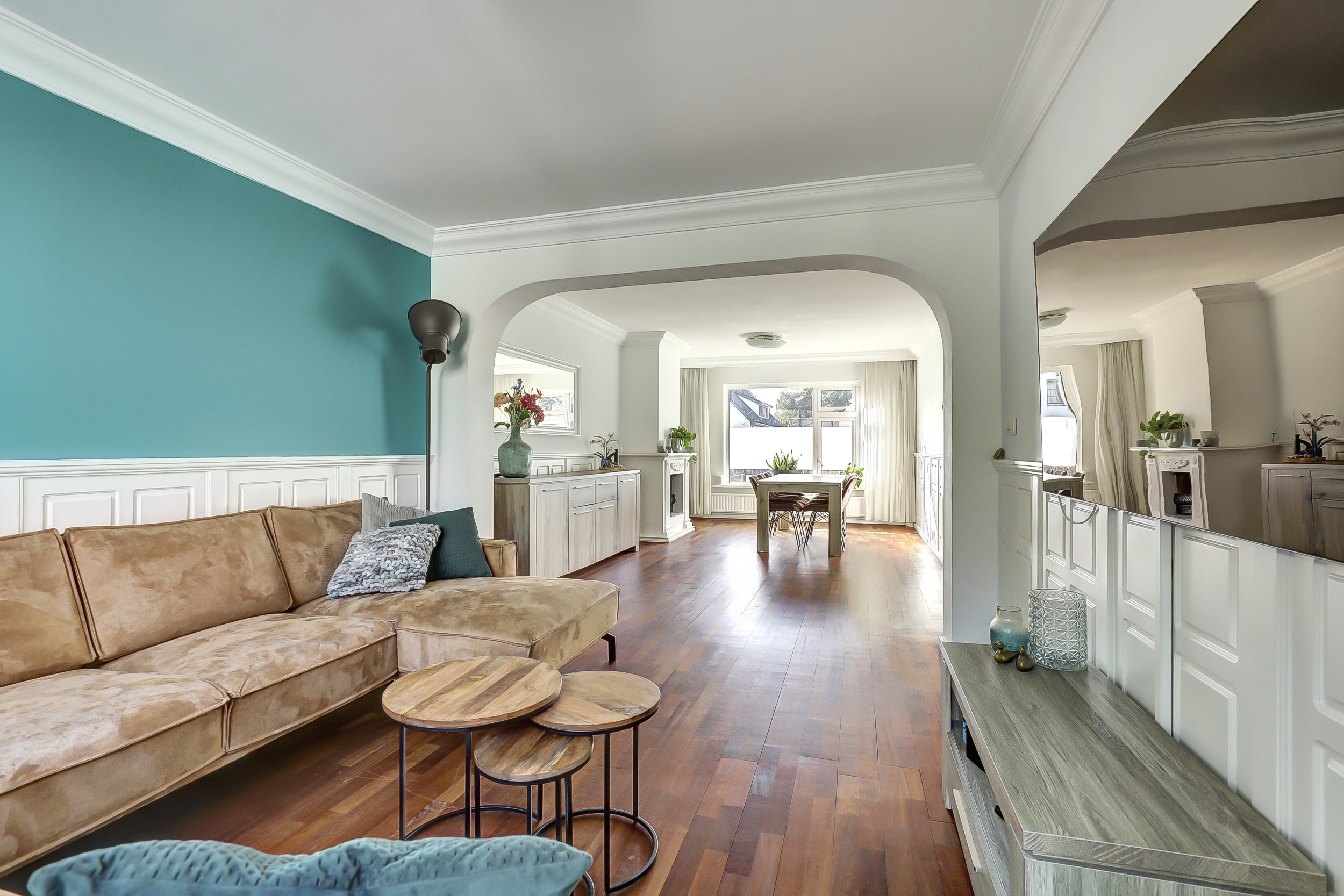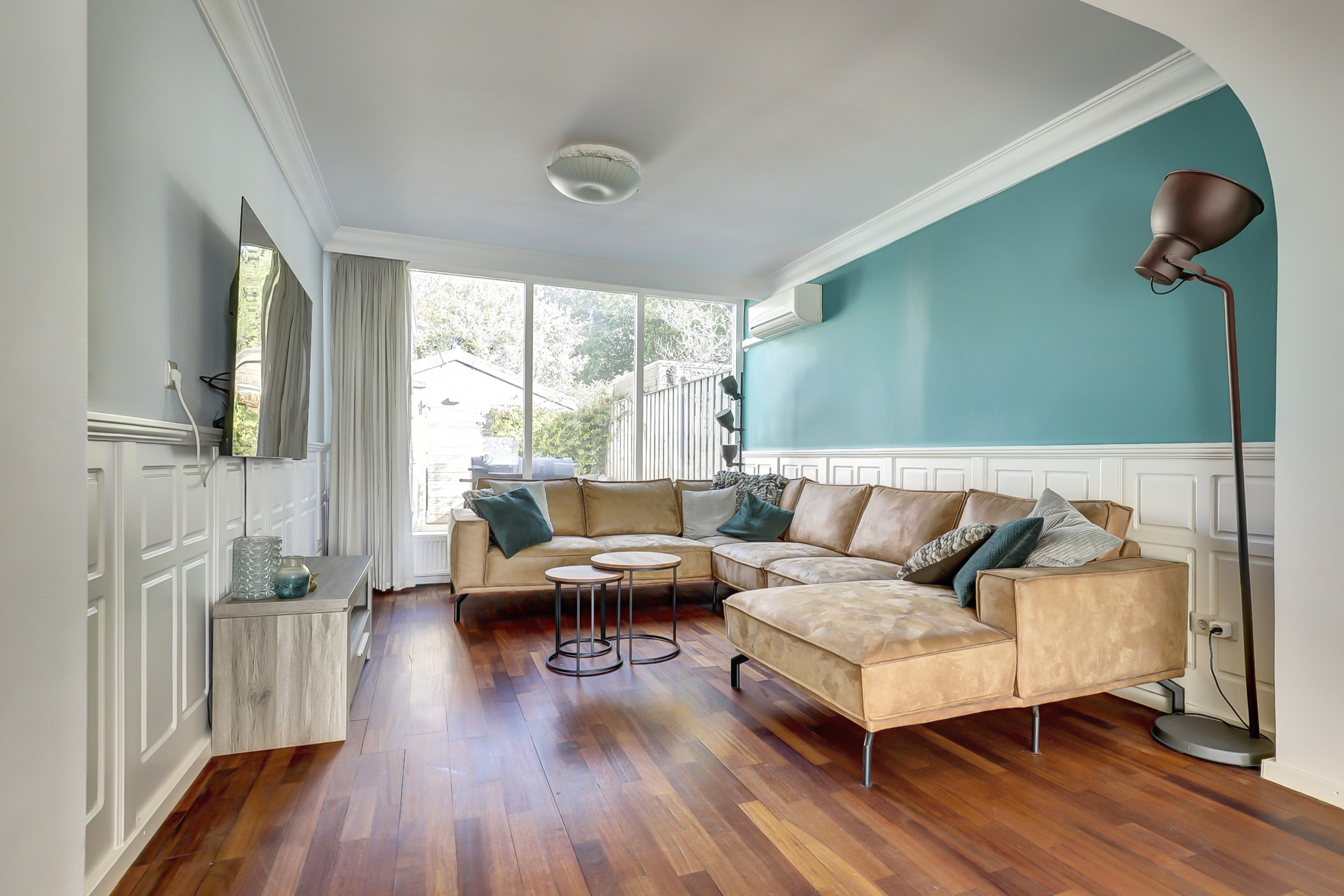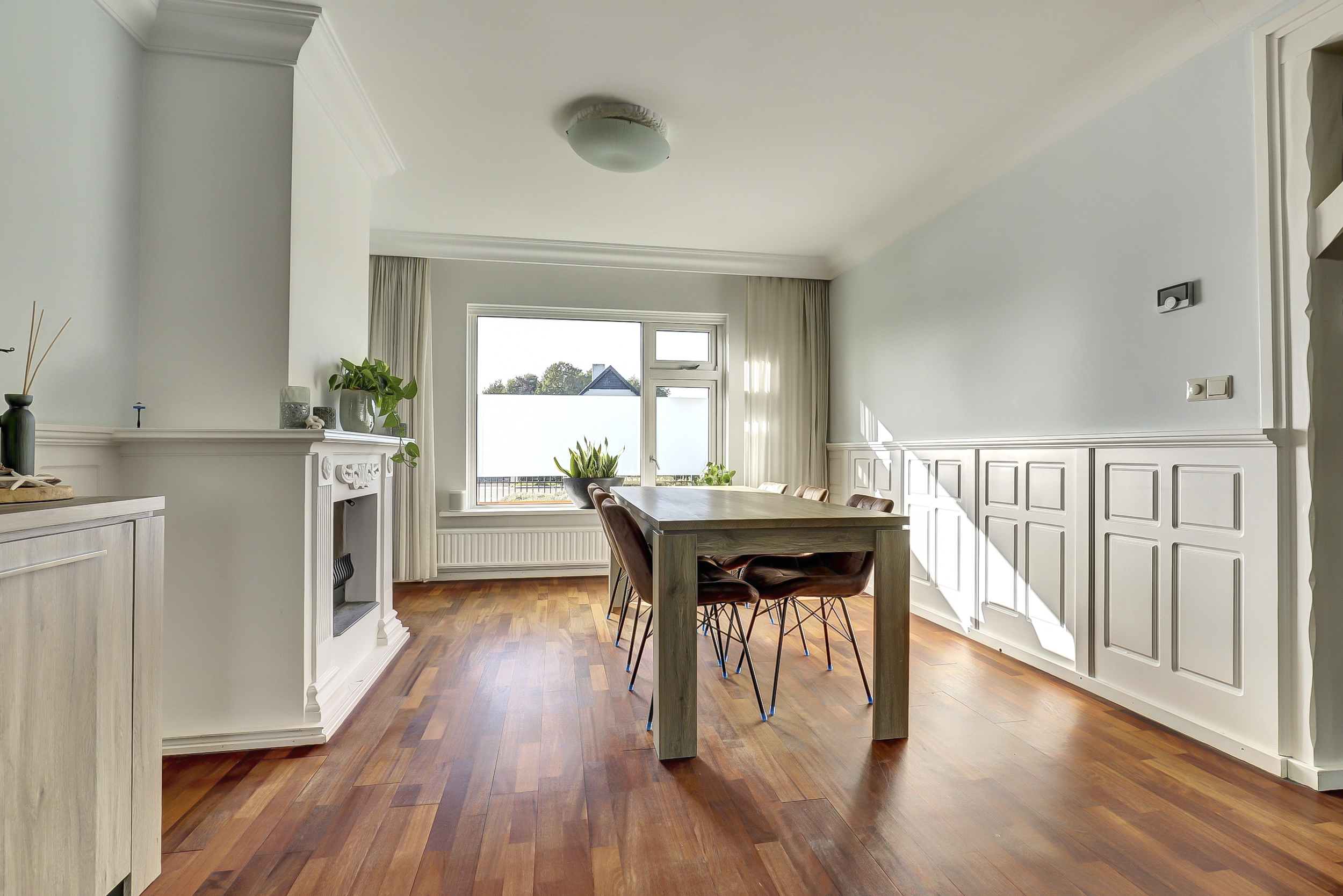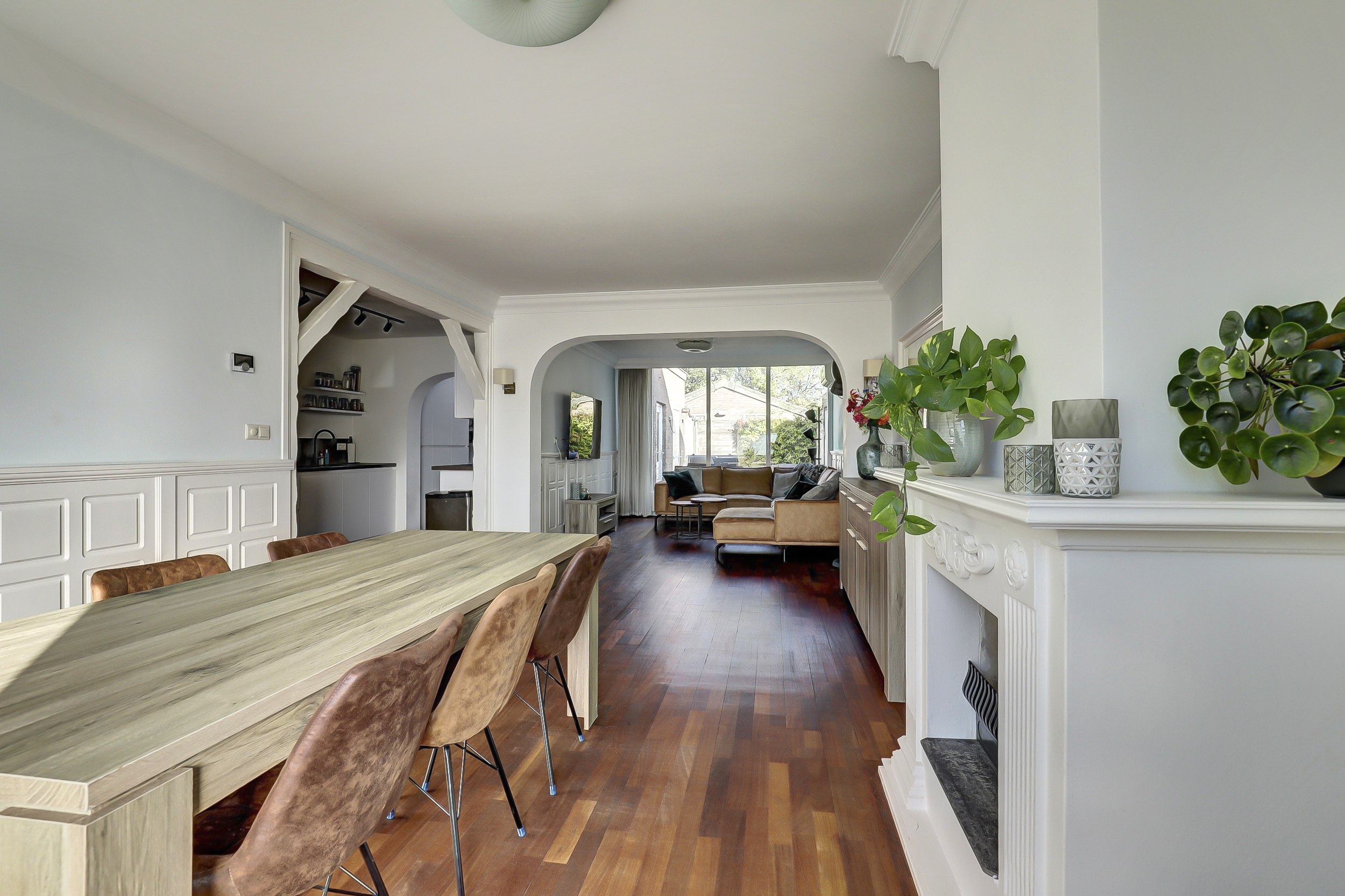 Je komt de woning binnen via de entree, waar zich de trapopgang, trapkast, het toilet en de meterkast bevinden. Vanuit de hal heb je toegang tot de royale living, die dankzij de uitbouw bijzonder ruim en licht is. De indeling is flexibel en biedt volop mogelijkheden voor het creëren van een fijne zit- en eethoek. De gehele begane grond is voorzien van een mooie houten vloer in een warme kleur. Verder hangt er een fijne airco.