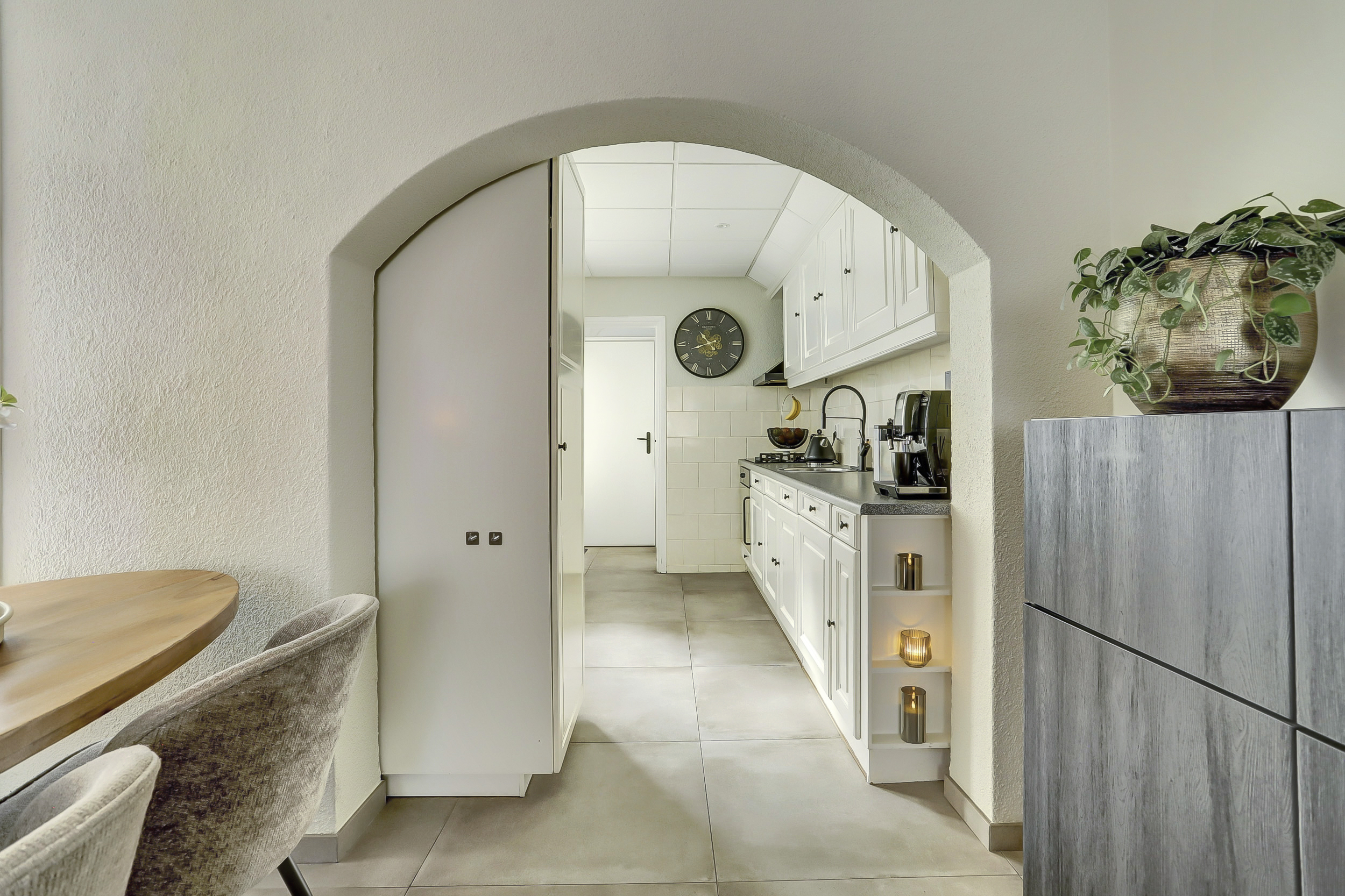 Entree met hal en trapopgang. Lichte woonkamer met prettige indeling, praktische trapkast en doorloop naar de keuken in de aanbouw. De keuken in rechte opstelling is voorzien van diverse inbouwapparatuur. Op de begane grond bevinden zich tevens een toilet en badkamer welke beide recent vernieuwd zijn in moderne afwerking.