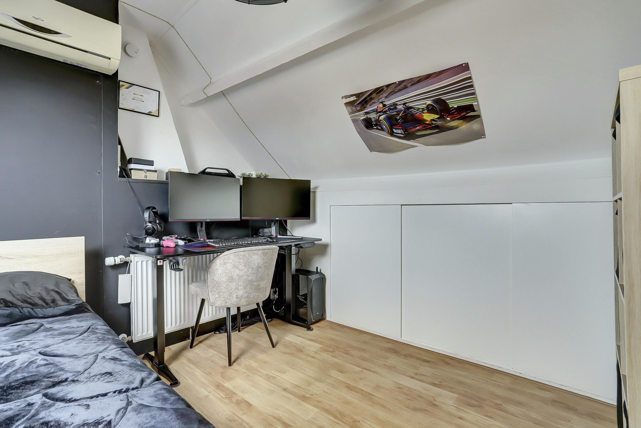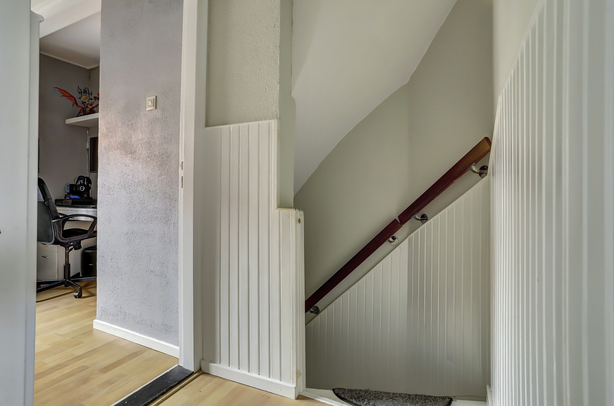 Overloop met toegang tot twee royale slaapkamers. Aan de achterzijde bevindt zich een groot, zonnig dakterras waar het heerlijk vertoeven is.