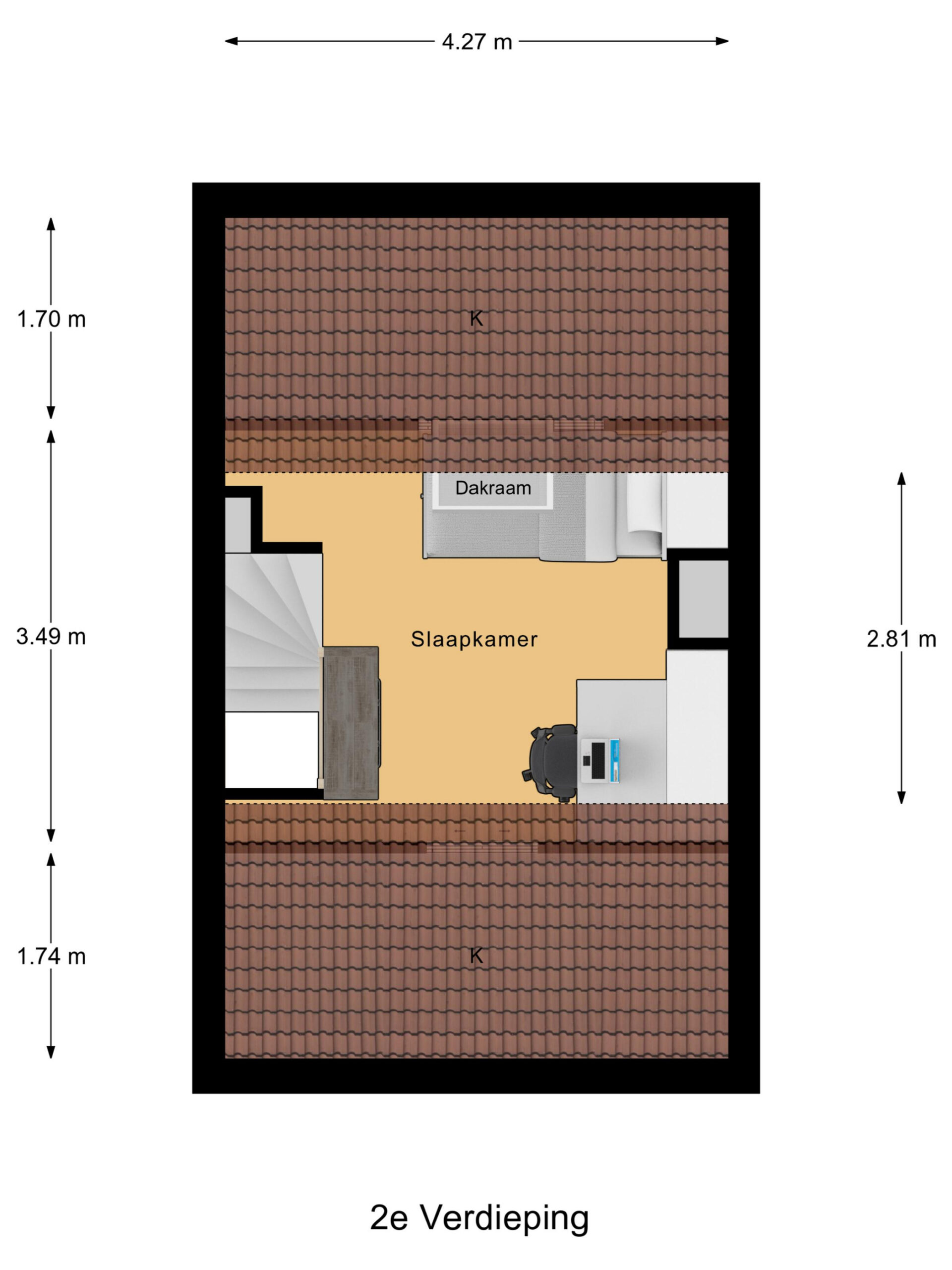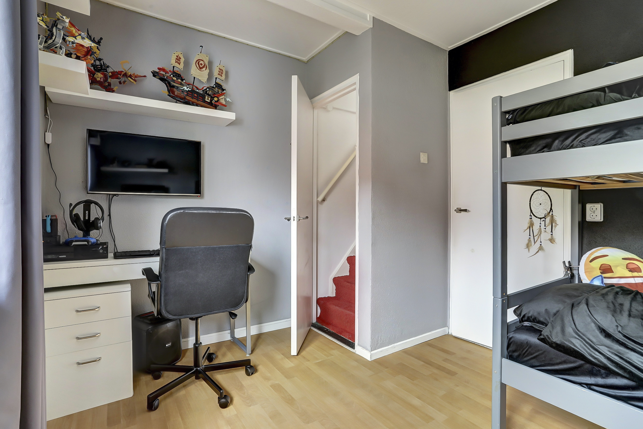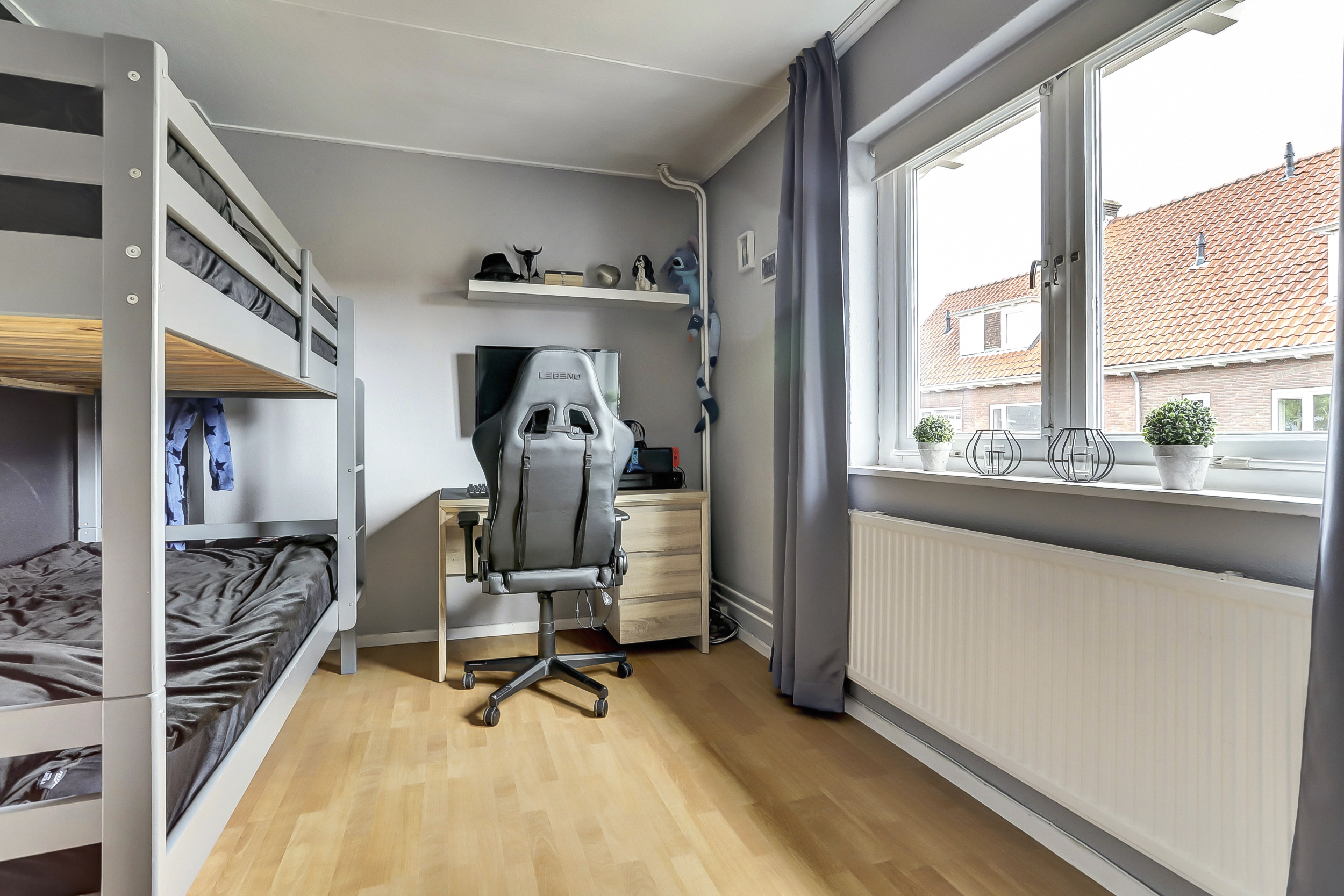 Via een vaste trap bereikbare zolderverdieping met een derde slaapkamer is voorzien van groot dakraam, bergruimte achter de knieschotten en de opstelling van de cv-ketel. Verder zijn er witgoedaansluitingen aanwezig.