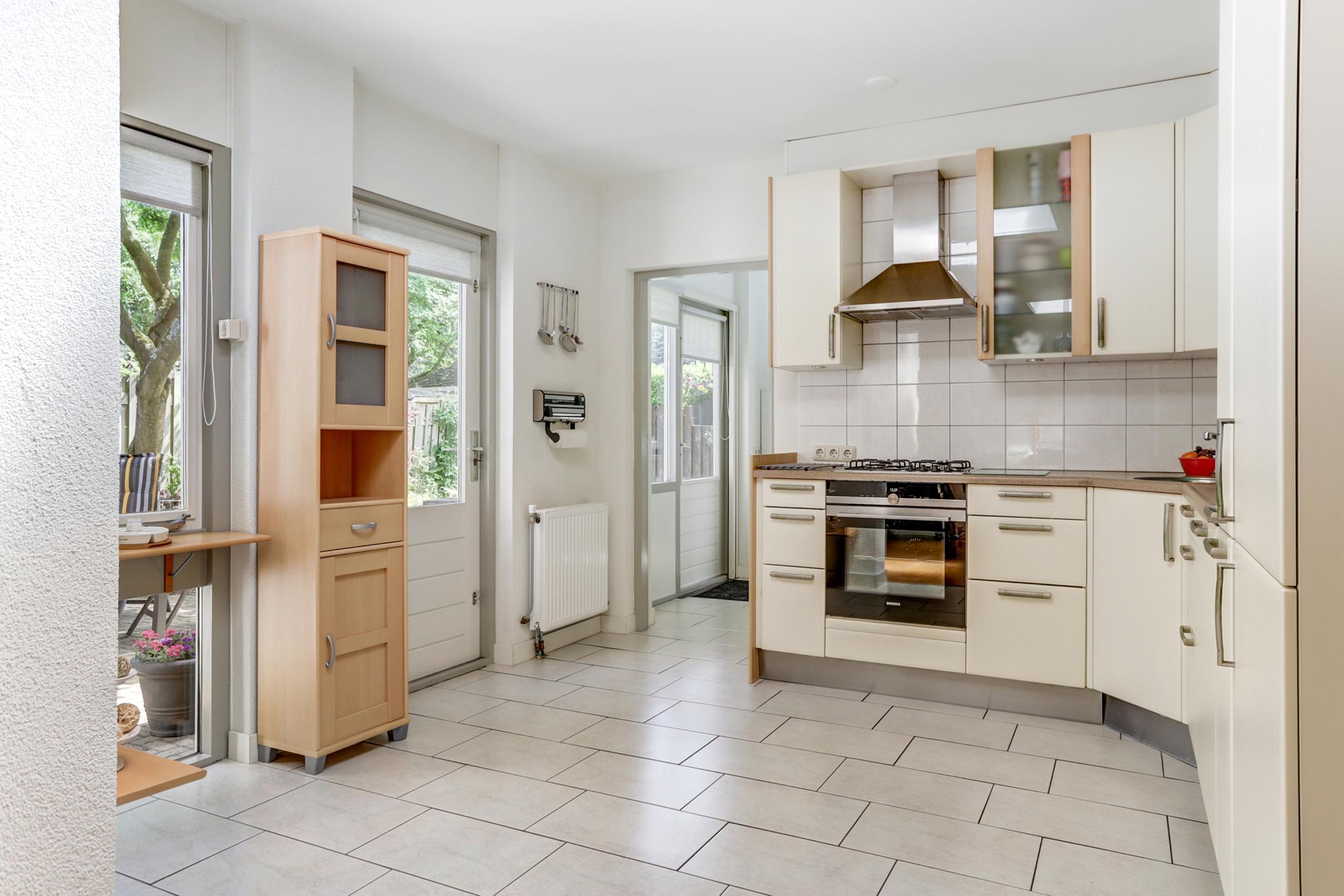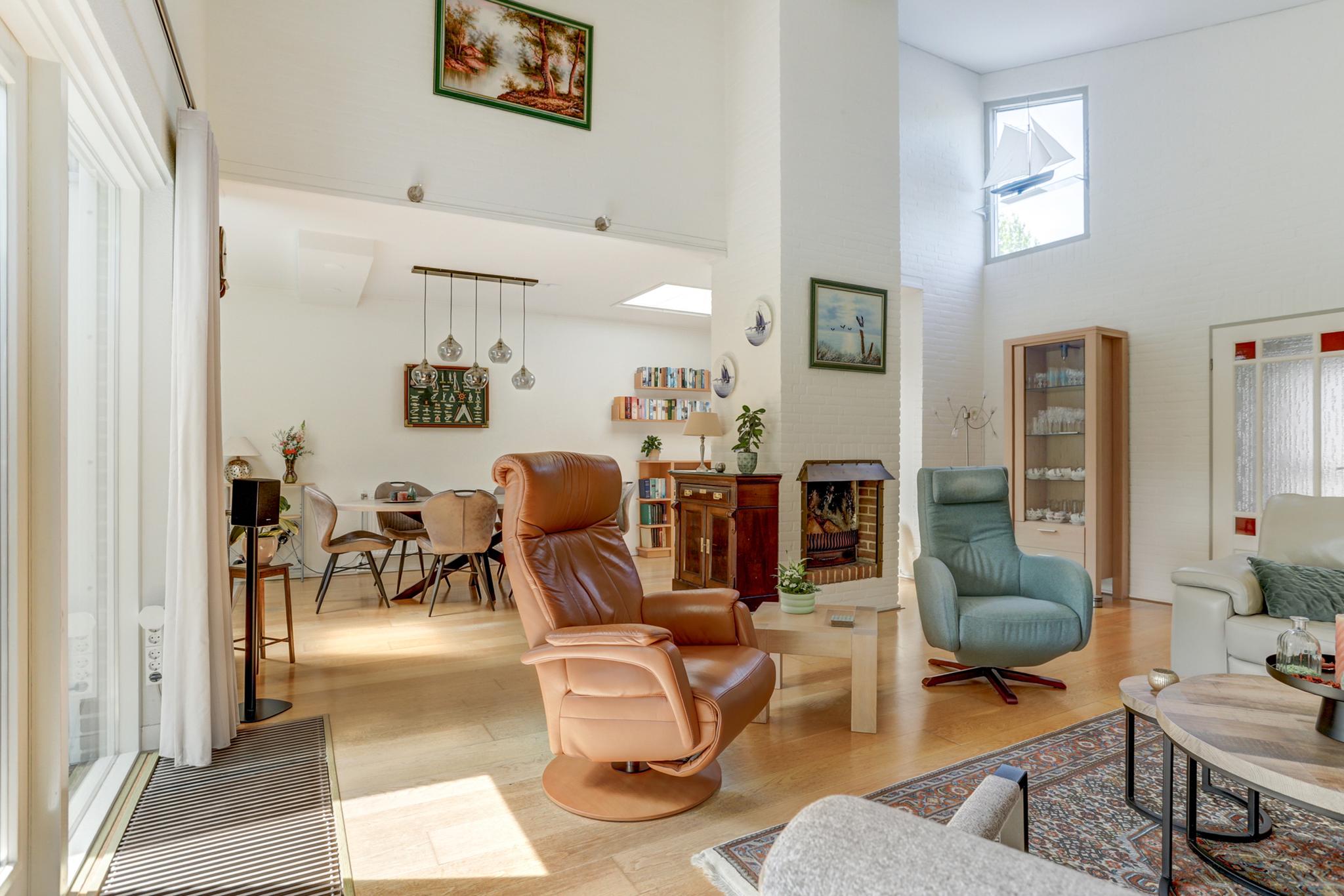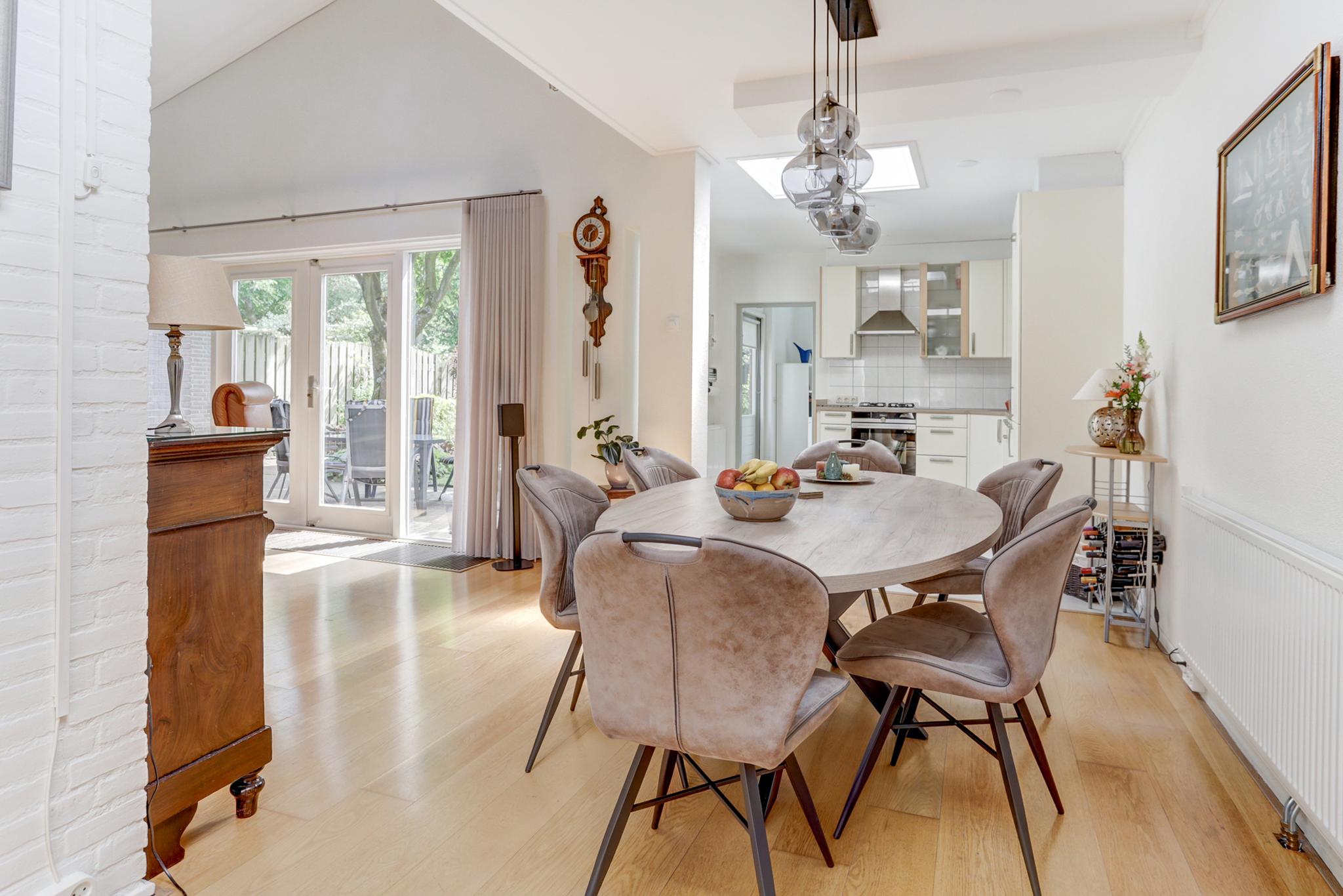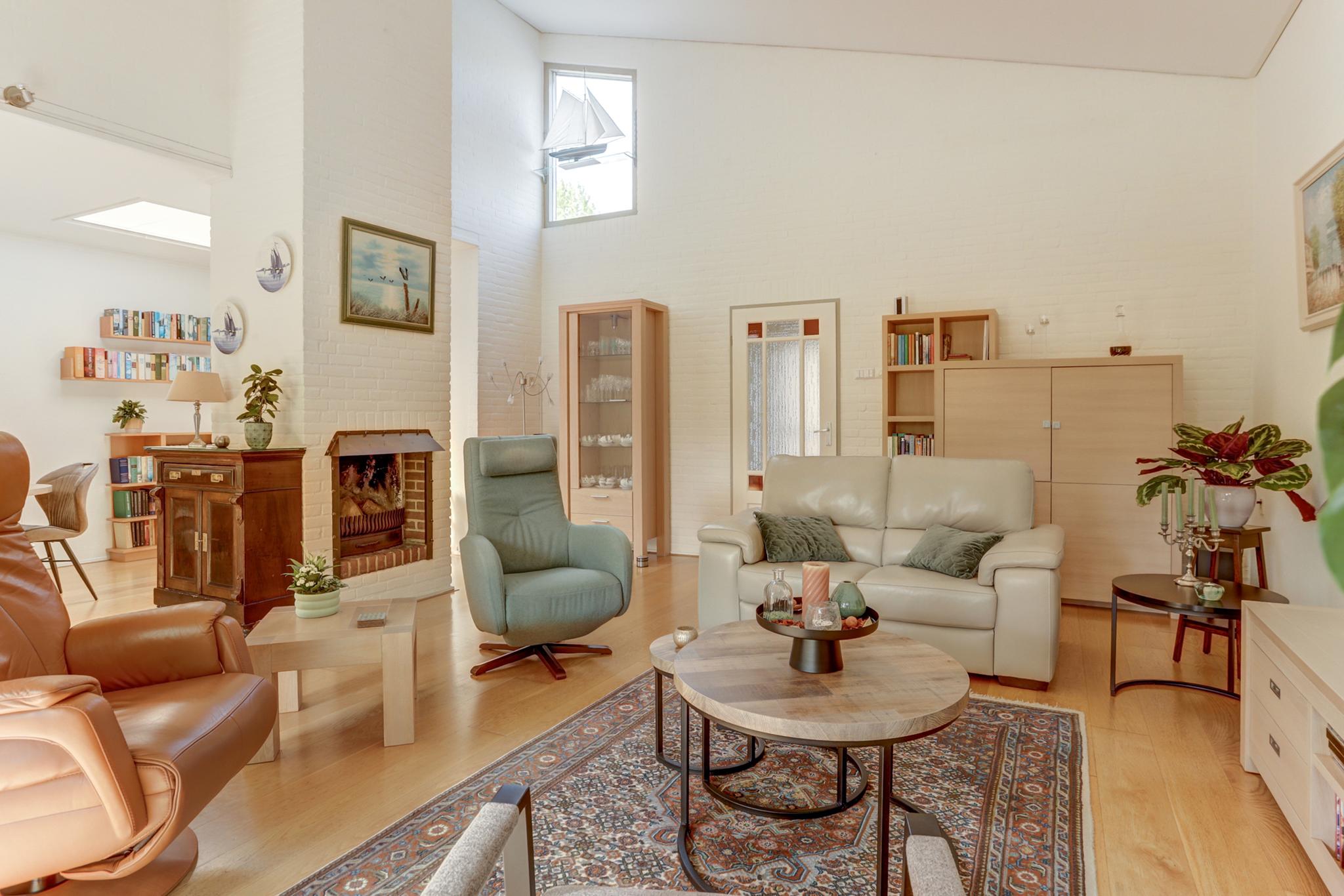 Via de riante entree bereik je alle vertrekken van de woning. De zeer lichte, op de tuin georiënteerde, woonkamer valt direct op door de speelse hoogte, grote raampartijen en het uitzicht op de fraaie achtertuin. Een open haard zorgt voor extra sfeer, terwijl de openslaande deuren toegang geven tot het zonnige terras. De nette open keuken is aansluitend en voorzien van diverse inbouwapparatuur. Eveneens is er vanuit hier toegang tot de tuin. Aangrenzend bevindt zich een praktische berging met witgoedaansluitingen, cv-ketel en een eigen loopdeur naar buiten.