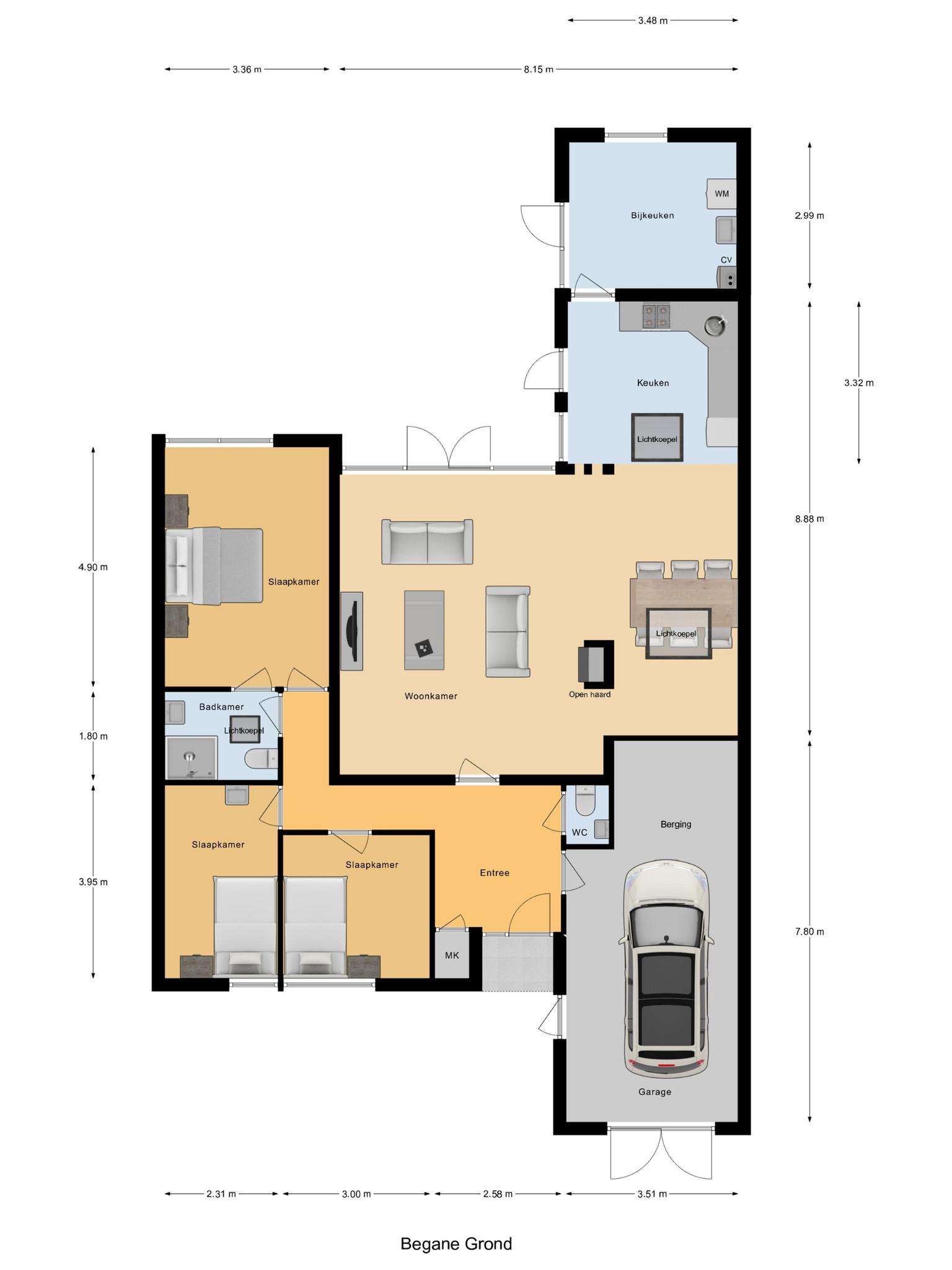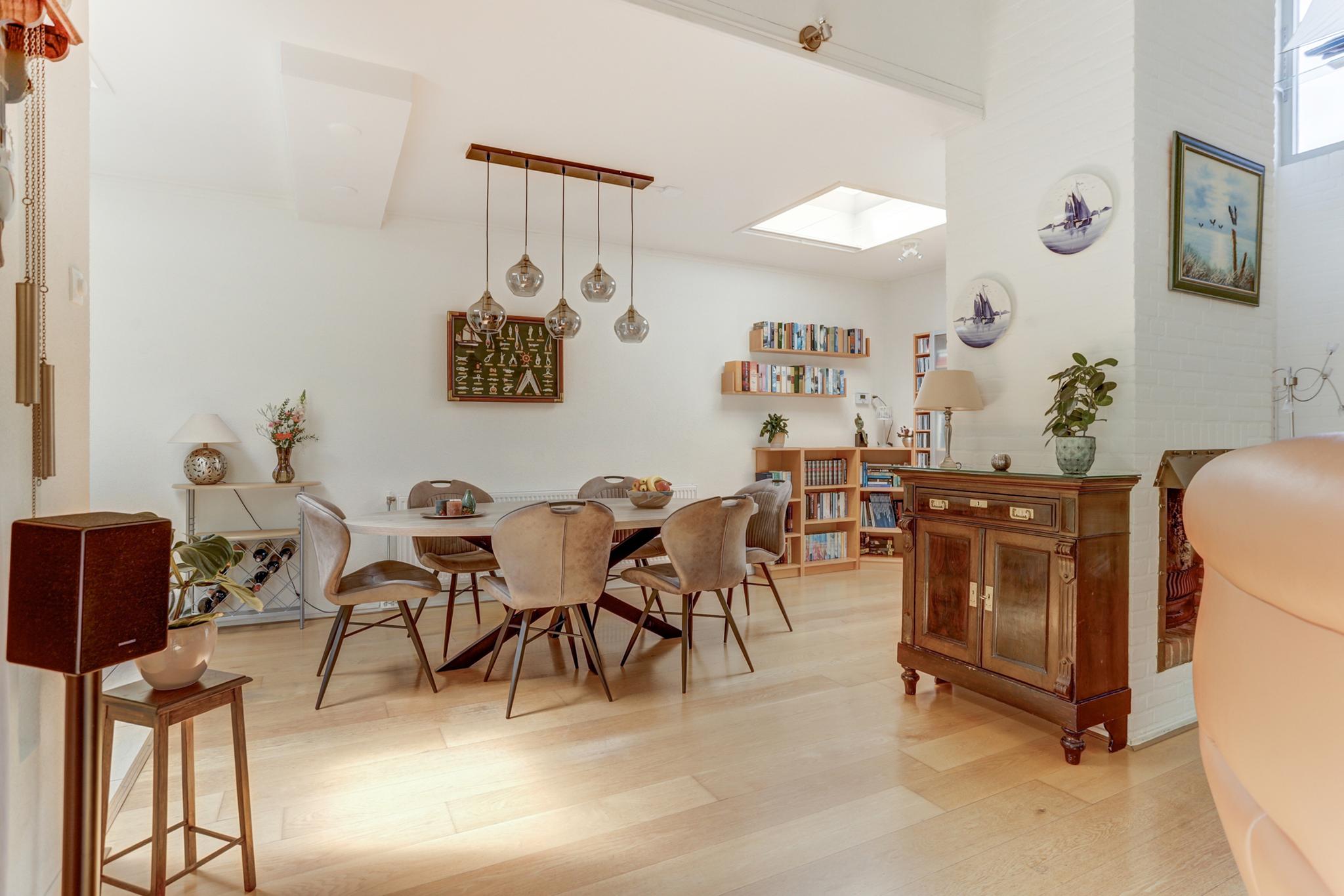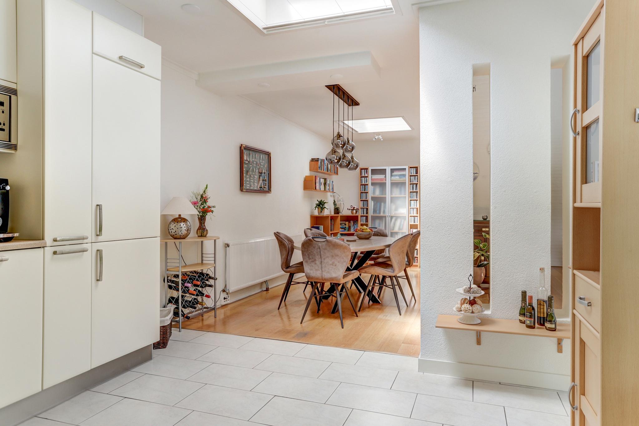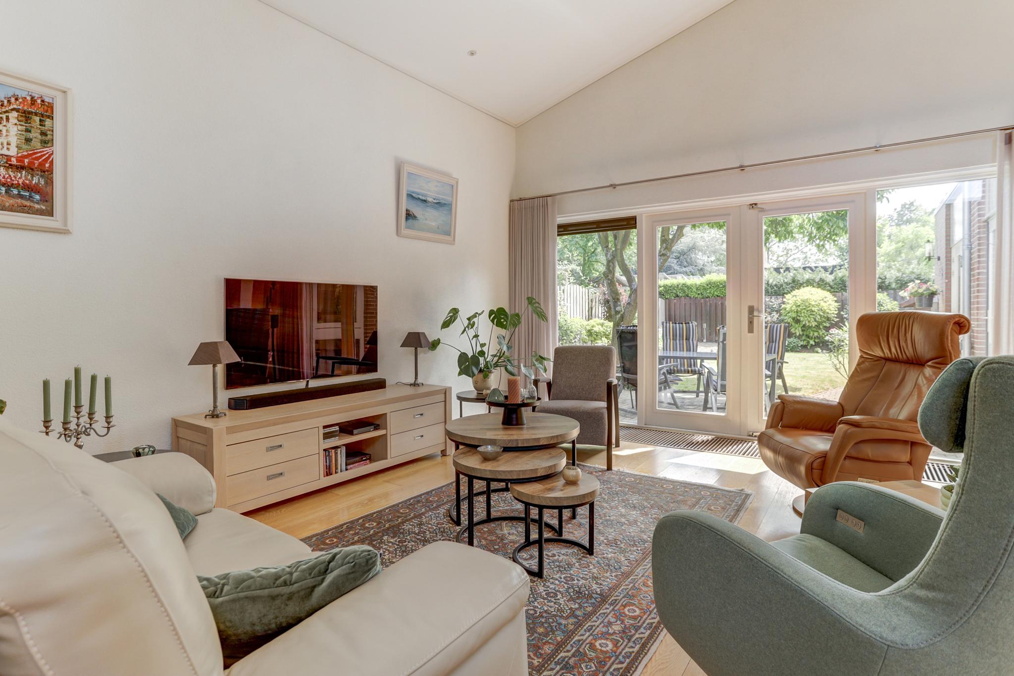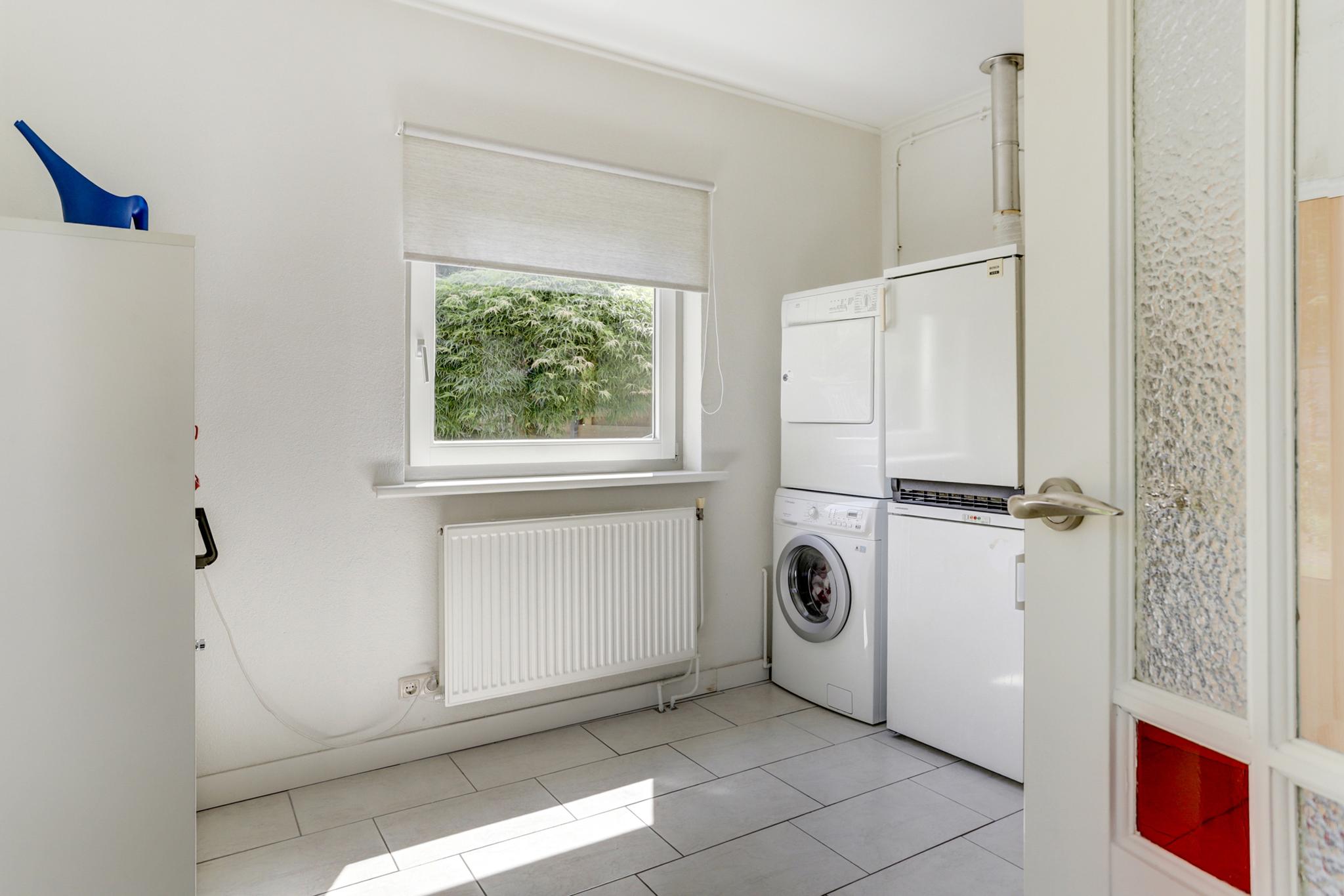 Via de riante entree bereik je alle vertrekken van de woning. De zeer lichte, op de tuin georiënteerde, woonkamer valt direct op door de speelse hoogte, grote raampartijen en het uitzicht op de fraaie achtertuin. Een open haard zorgt voor extra sfeer, terwijl de openslaande deuren toegang geven tot het zonnige terras. De nette open keuken is aansluitend en voorzien van diverse inbouwapparatuur. Eveneens is er vanuit hier toegang tot de tuin. Aangrenzend bevindt zich een praktische berging met witgoedaansluitingen, cv-ketel en een eigen loopdeur naar buiten.