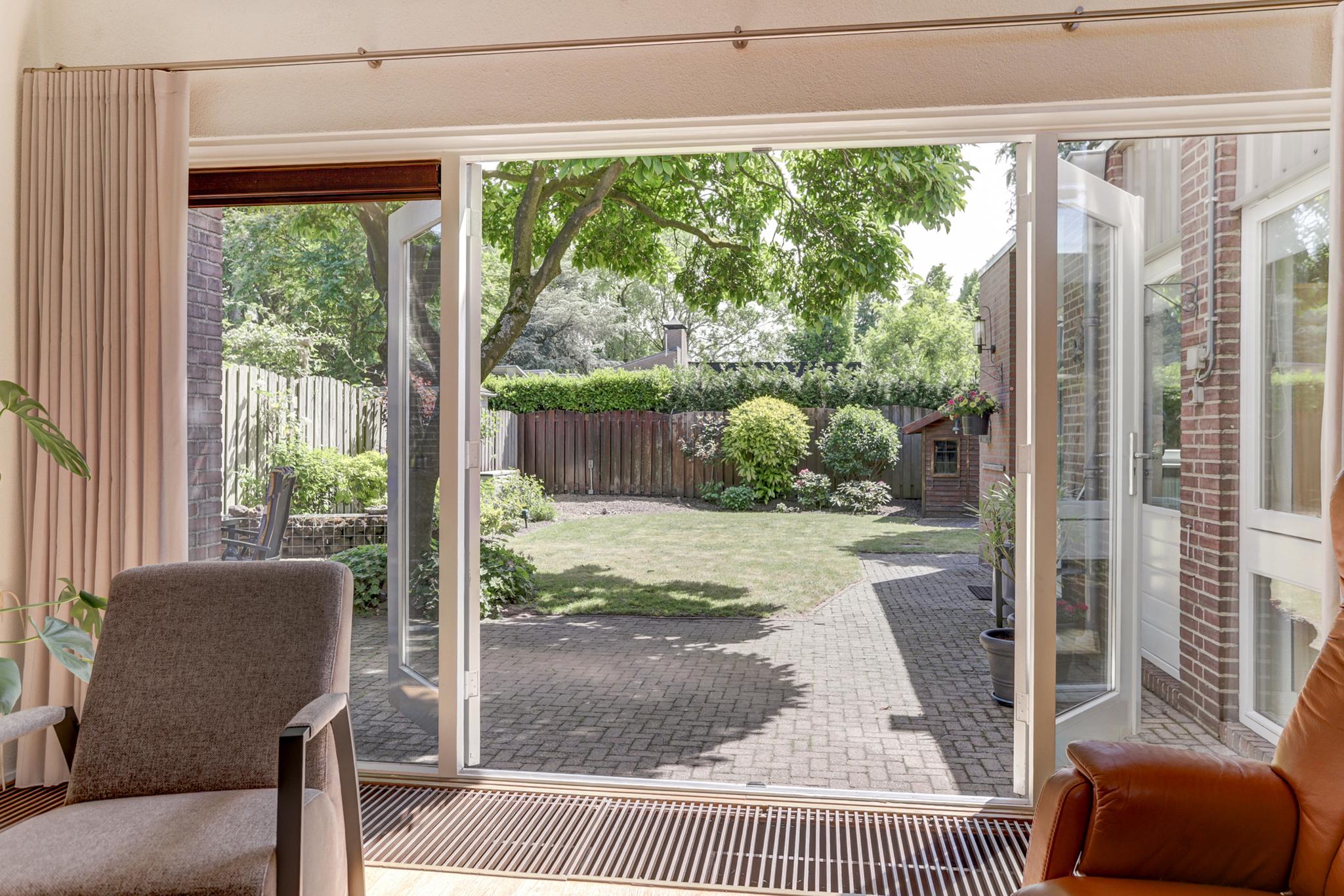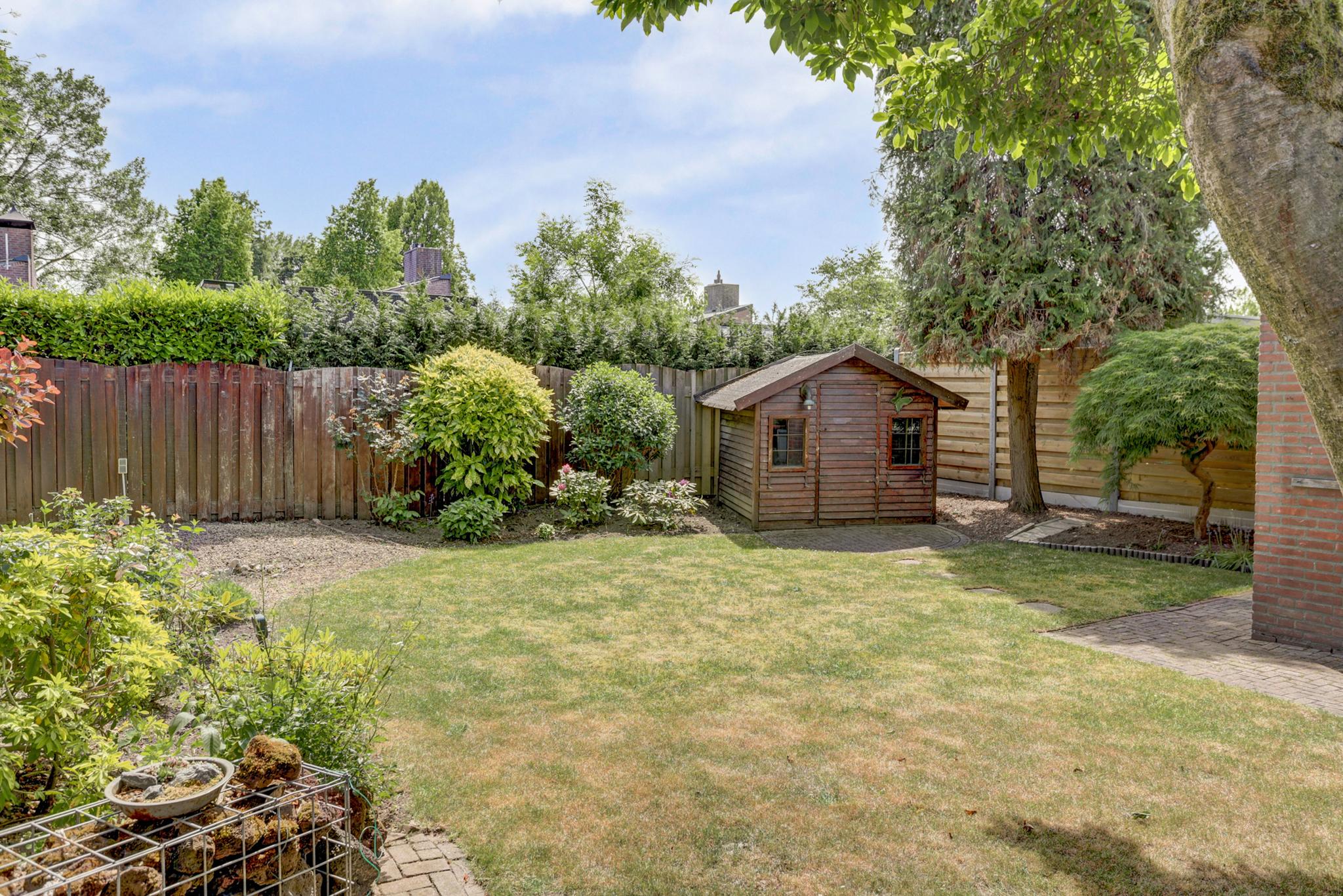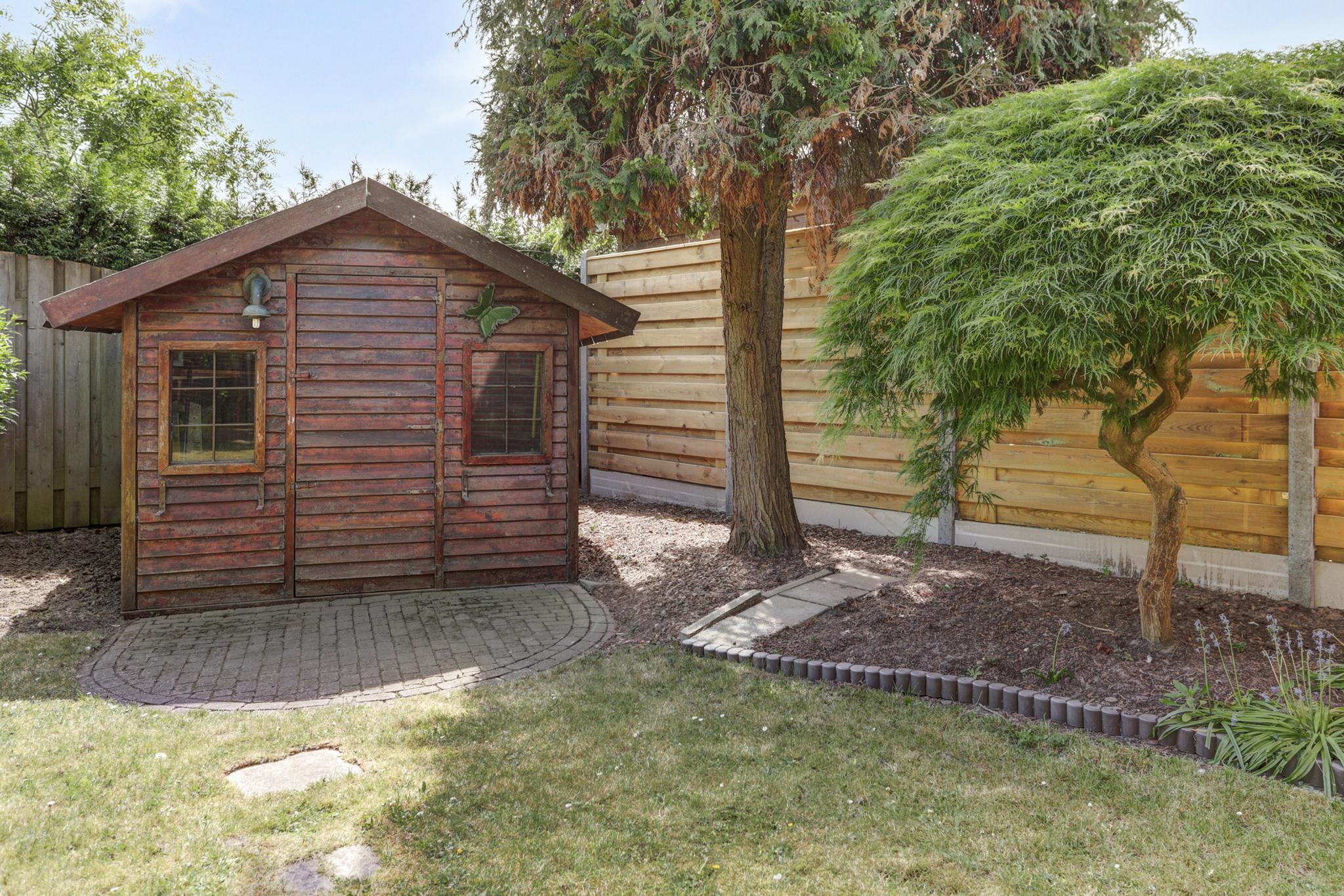 De achtertuin is een absoluut pluspunt: gelegen op het zuiden, met een ruim terras, groene borders, een houten berging en prachtige volgroeide bomen. Hier geniet u in alle rust van zon, natuur en privacy.