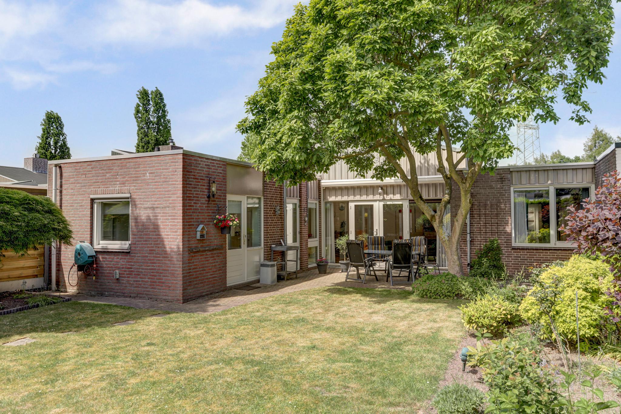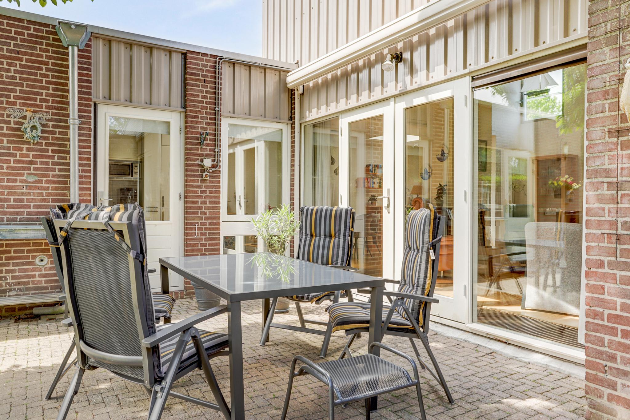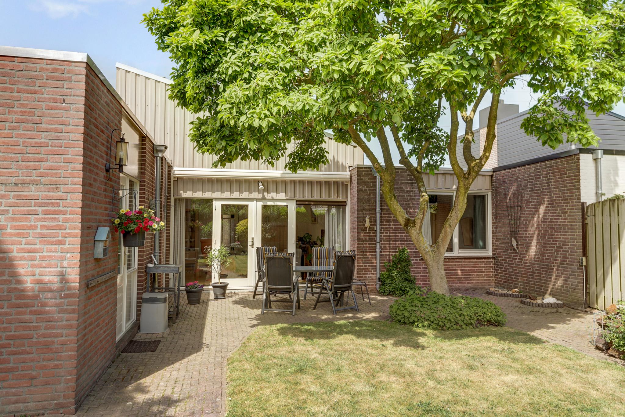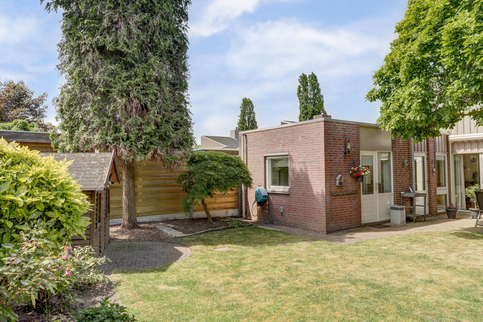 De achtertuin is een absoluut pluspunt: gelegen op het zuiden, met een ruim terras, groene borders, een houten berging en prachtige volgroeide bomen. Hier geniet u in alle rust van zon, natuur en privacy.